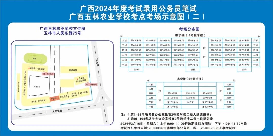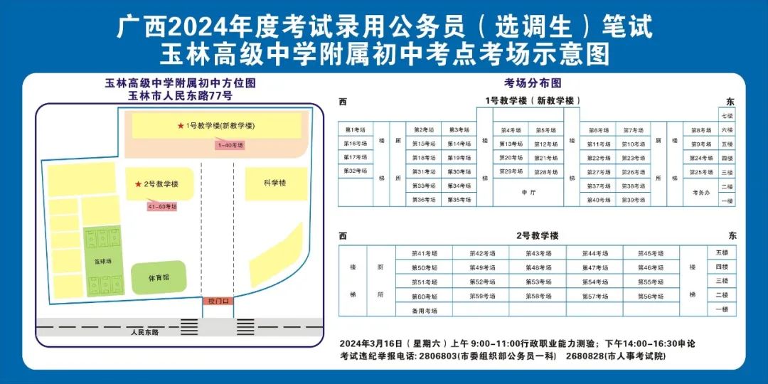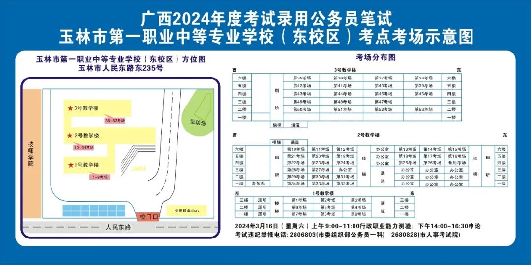 2024年選擇在玉林考區(qū)參加考試的考生人數(shù)較多,屆時(shí)考點(diǎn)區(qū)域內(nèi)的食宿、交通較為緊張。請(qǐng)?zhí)崆傲私獗救怂诳键c(diǎn)具體位置,熟悉考點(diǎn)周邊情況,根據(jù)考點(diǎn)的情況合理做好食宿安排和出行計(jì)劃。需要特別注意的是:玉林市第一職業(yè)中等專業(yè)學(xué)校考點(diǎn)是設(shè)在該校的東校區(qū)(人民東路東235號(hào));玉林市第一中學(xué)考點(diǎn)是設(shè)在該校的運(yùn)嶺路校區(qū)(二環(huán)北路1228號(hào))!