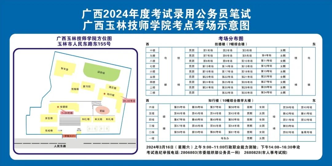 廣西2024年度考試錄用公務(wù)員(選調(diào)生)筆試將于3月16日舉行,為進(jìn)一步提升玉林考區(qū)服務(wù)保障質(zhì)量,現(xiàn)就有關(guān)注意事項(xiàng)提示如下,請(qǐng)廣大考生做好應(yīng)試準(zhǔn)備工作,準(zhǔn)確掌握考試時(shí)間、考點(diǎn)地址及相關(guān)注意事項(xiàng)。
