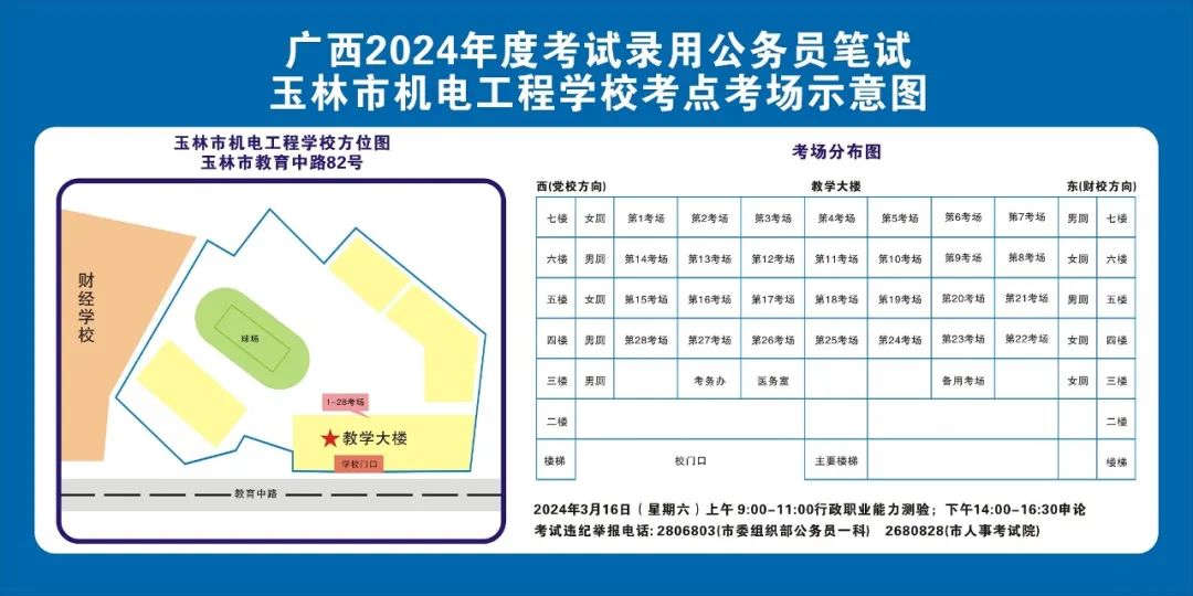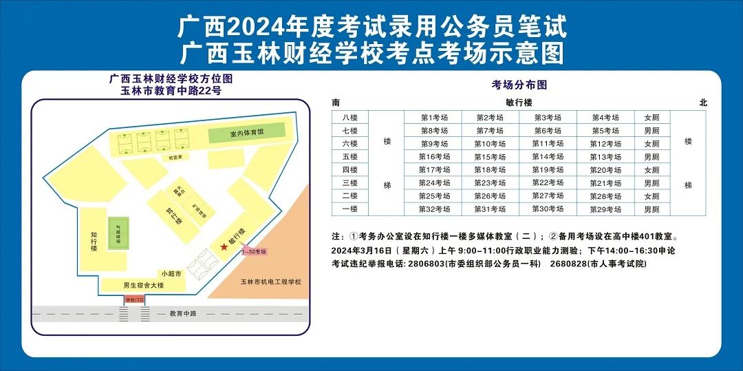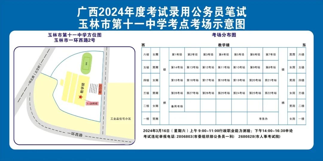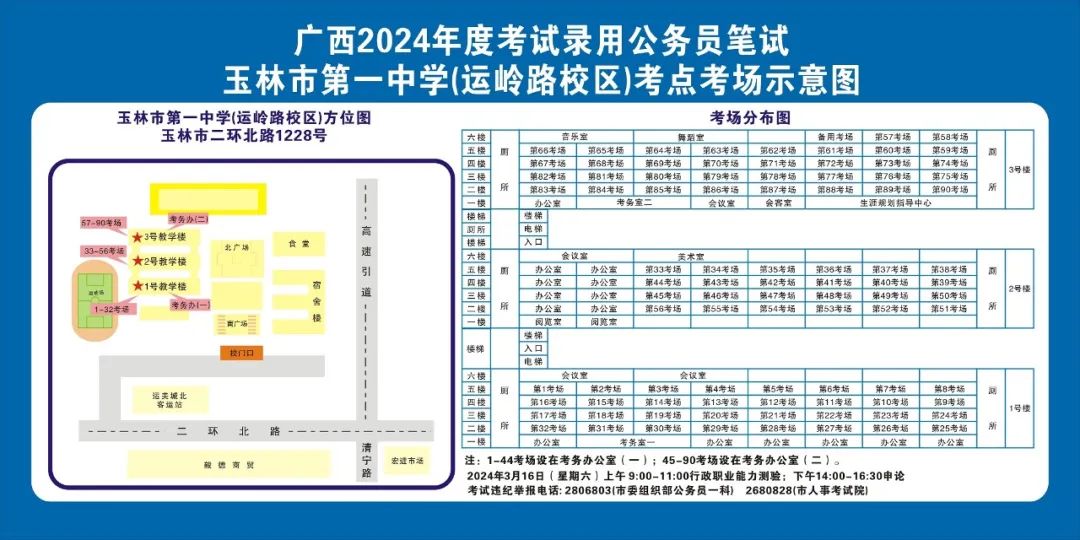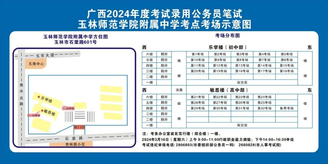 除考試當(dāng)天考生可以進(jìn)入考點(diǎn)外,考生不得提前進(jìn)入考點(diǎn)查看考場(學(xué)校將在大門處擺放考場分布示意圖),玉林考區(qū)10個(gè)考點(diǎn)的考場布置情況如下: