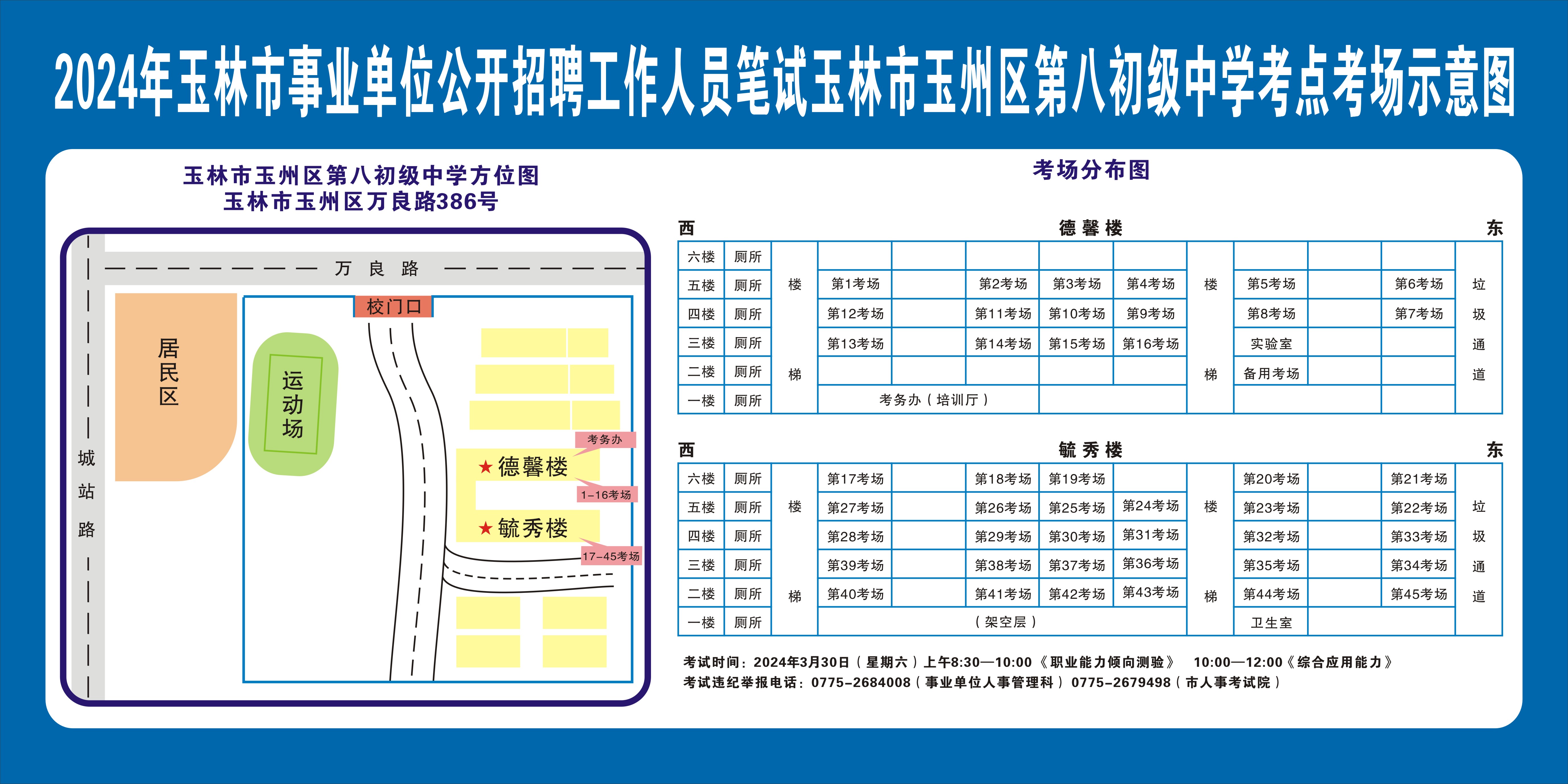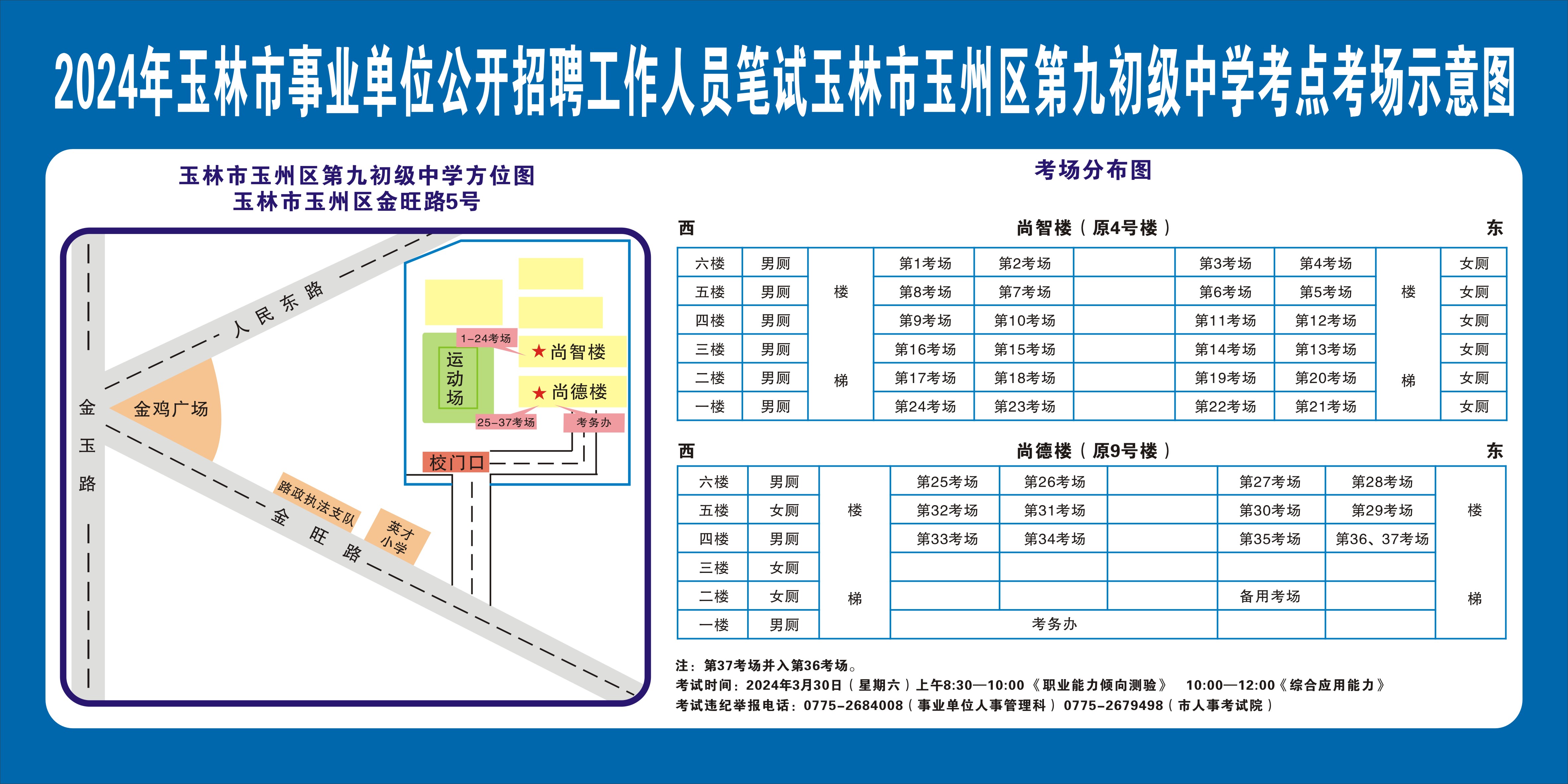請考生注意查看“考點考場示意圖”,提前熟悉考點地址、交通路線和考場分布情況。除考試當天考生可以進入考點外,考生不得提前進入考點查看考場(學校將在大門處擺放考場分布示意圖),13個考點的考場布置情況如下: