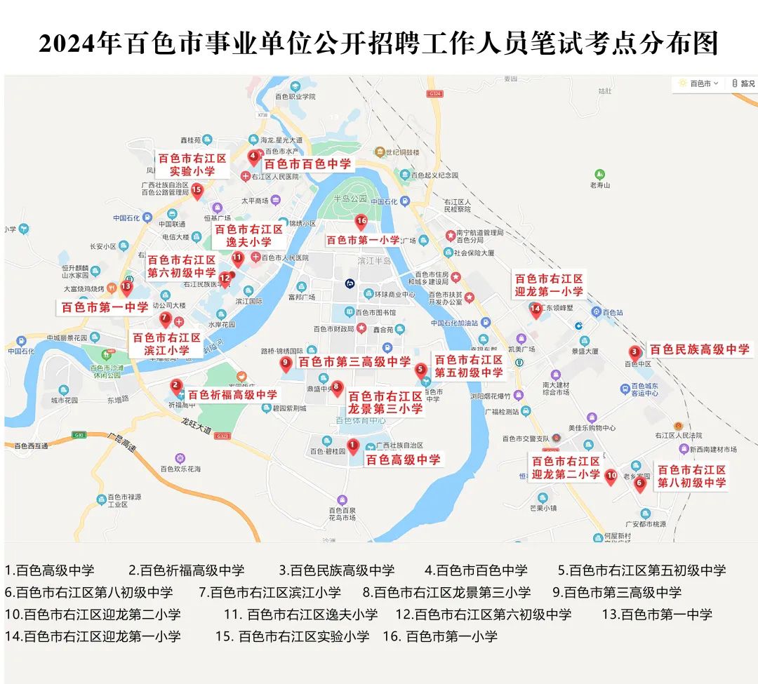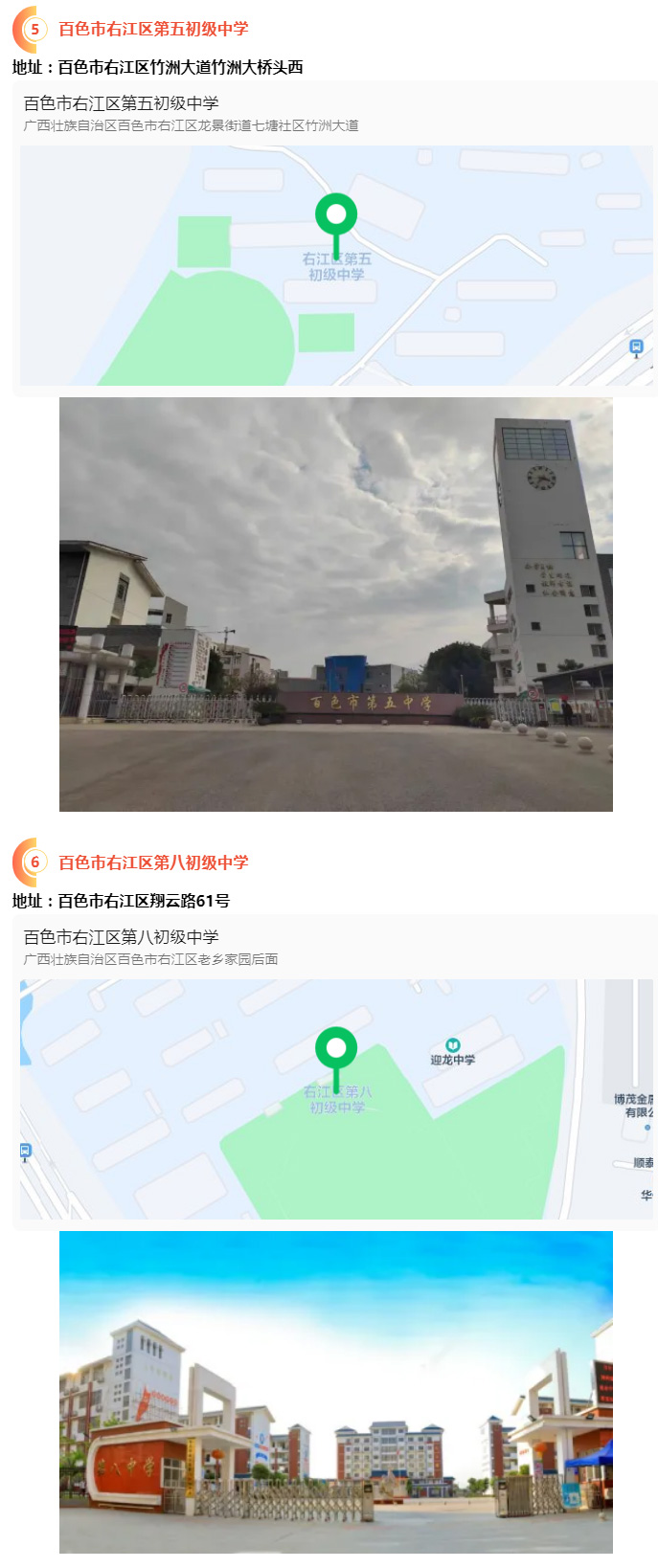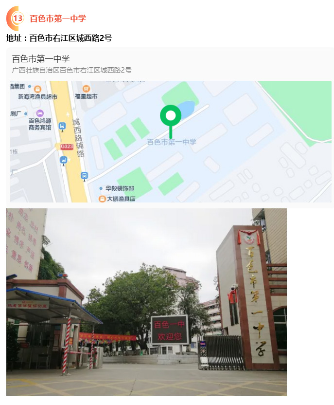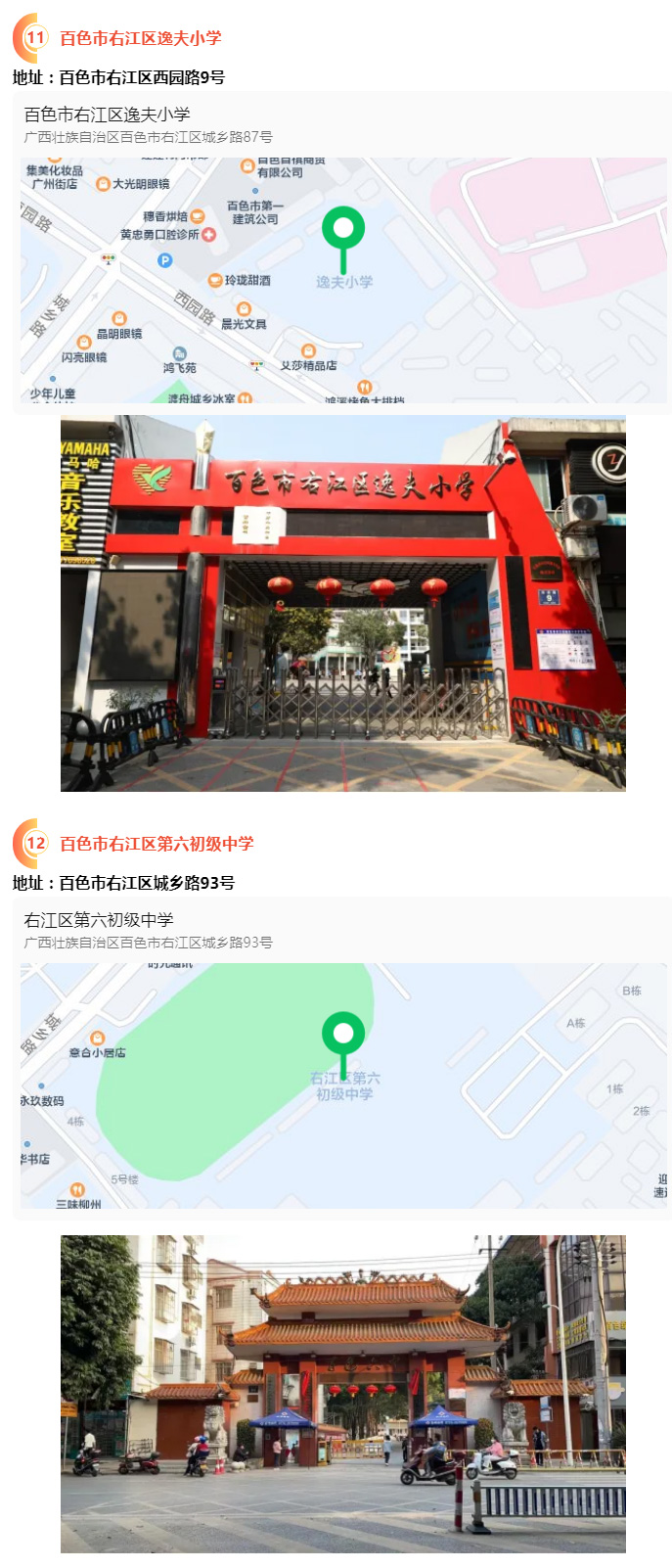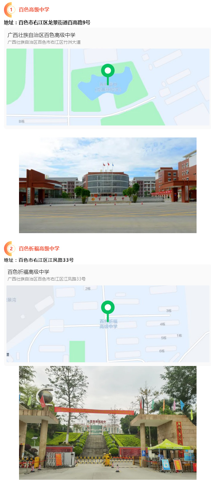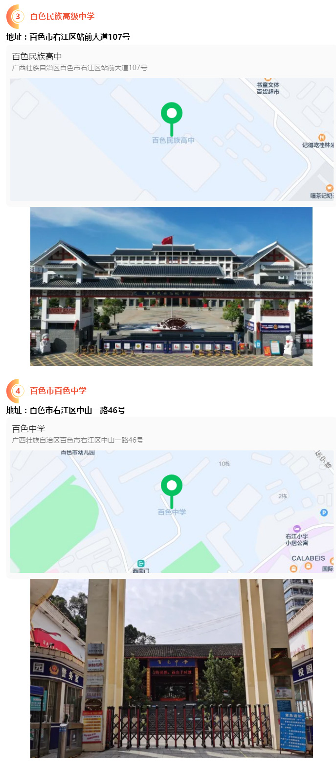 2.請提前熟悉考點地址,做好路線、住宿的安排。本次考試參考人數較多,考點分布分散,建議考生考前實地察看考點,確認考點入口位置,防止走錯考點。請充分考慮考點周邊交通通行情況和停車場地容量,合理安排出行方式,預留充足時間,確保考試當天按時到達。另外,考試期間百色市及各考點學校周邊的住宿比較緊張,請提前預定。