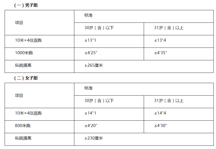 體能測評三項全部達標方為合格。報考理化檢驗、獄醫緊缺職位的人員,體能測評三項中有兩項達標的,視為合格。