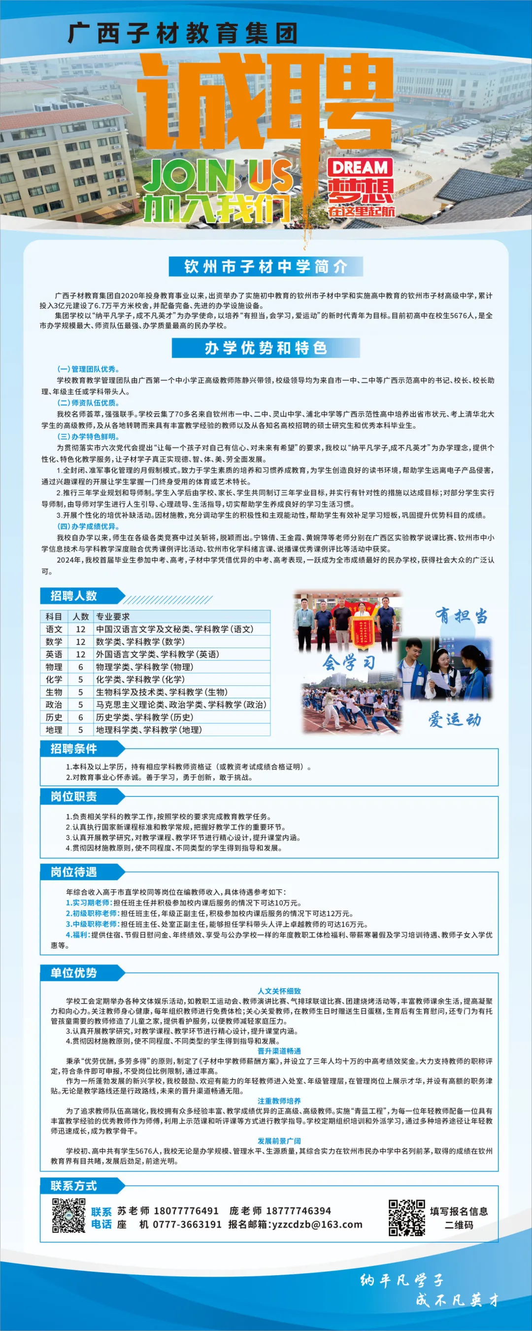 欽州市子材中學2025年教師招聘計劃