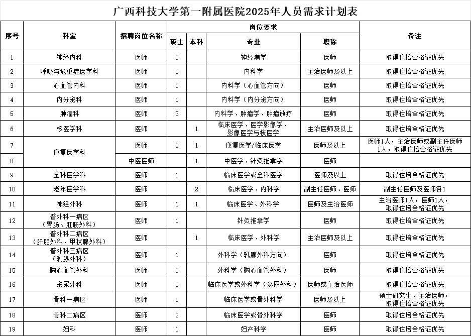2025年廣西科技大學第一附屬醫院招聘56人