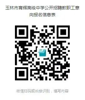 11月28日前,有意應聘人員可先將電子版簡歷、成績單等個人材料以“應聘崗位+姓名+聯系電話”形式命名,發至育輝高級中學郵箱(yhgjzx2021@163.com),并填寫《玉林市育輝高級中學公開招聘教師意向報名信息表》(掃附件3二維碼進入填寫頁面),提交報名信息后掃描彈出的二維碼加入招聘QQ群,但最終以現場報名為準。