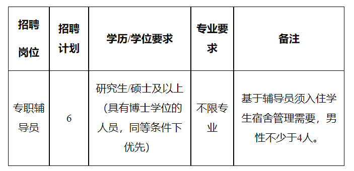 (四)年齡不超過30周歲,即1993年12月1日及之后出生;具有博士學位的,或具有高級職稱的,或有專職輔導員工作經驗且在各類輔導員職業能力競賽、輔導員評優評先等活動中獲得過省部級(含)以上獎勵表彰者,年齡可放寬至35周歲,即1988年12月1日及之后出生。