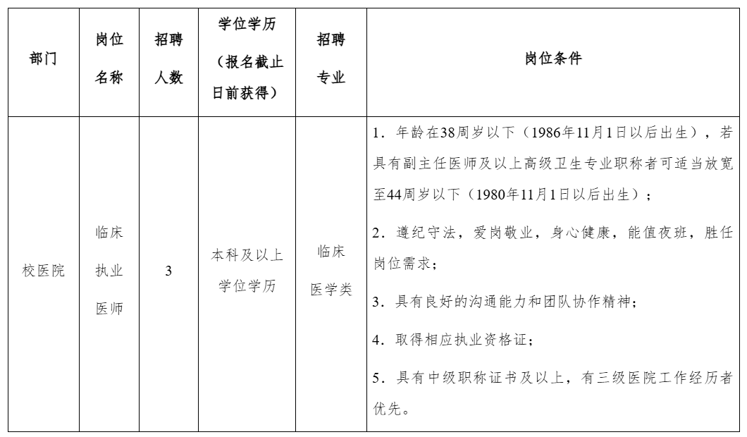 為加強學校醫療隊伍建設,經研究,決定面向社會公開招聘醫務工作人員3名。現將有關招聘事項通告如下: