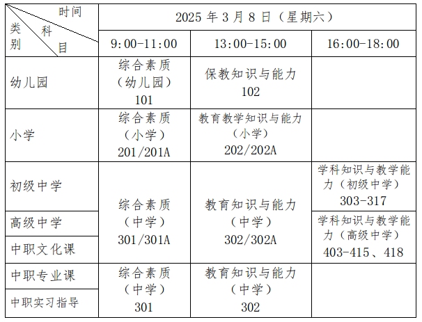 3.報(bào)考中職專(zhuān)業(yè)課和中職實(shí)習(xí)指導(dǎo)教師資格的考生,筆試考2個(gè)公共科目,科目代碼分別為301、302。