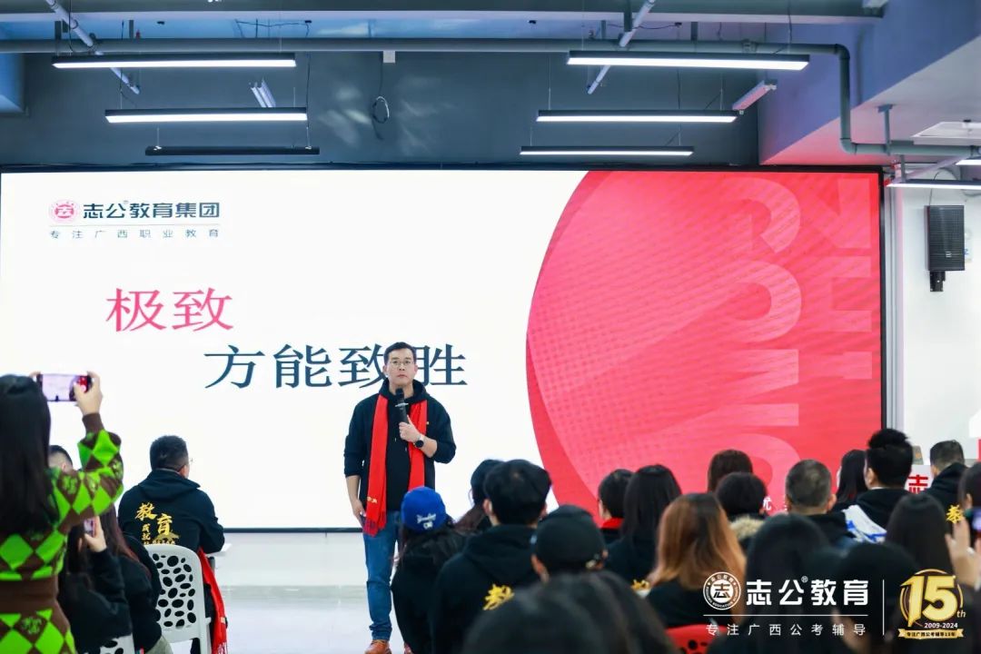 第一是極致本土化,董事長李勇表示這是志公教育集團(tuán)安身立業(yè)的根本,他表示這要求對(duì)廣西公職考試響應(yīng)速度要快,針對(duì)廣西的考情和學(xué)情,研發(fā)產(chǎn)品教學(xué)方法和課程資料,這是對(duì)教研院的考驗(yàn),明確表示未來要把錢投在學(xué)員的服務(wù)上、老師的數(shù)量、學(xué)習(xí)班主任。志公教育現(xiàn)在有志公教育(保稅區(qū))全封閉基地,志公教育(中關(guān)村)全封閉基地,未來希望在桂林,柳州,百色等地也建立基地,讓志公教育在八桂大地生根,實(shí)現(xiàn)各美其美,美美與共。