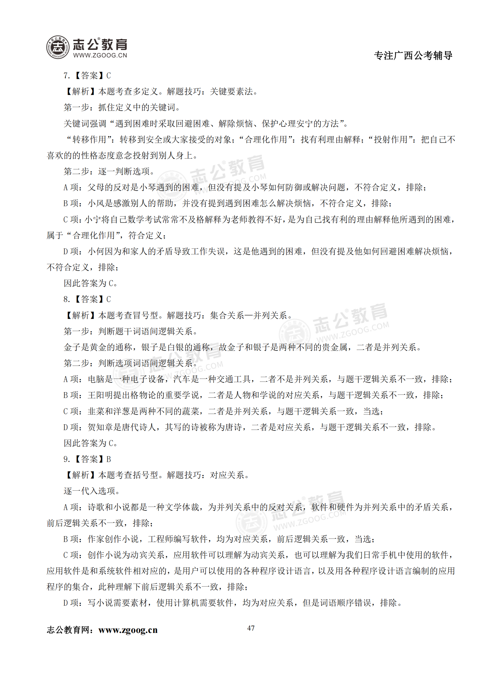【公考模塊練習】判斷推理題四(答案)