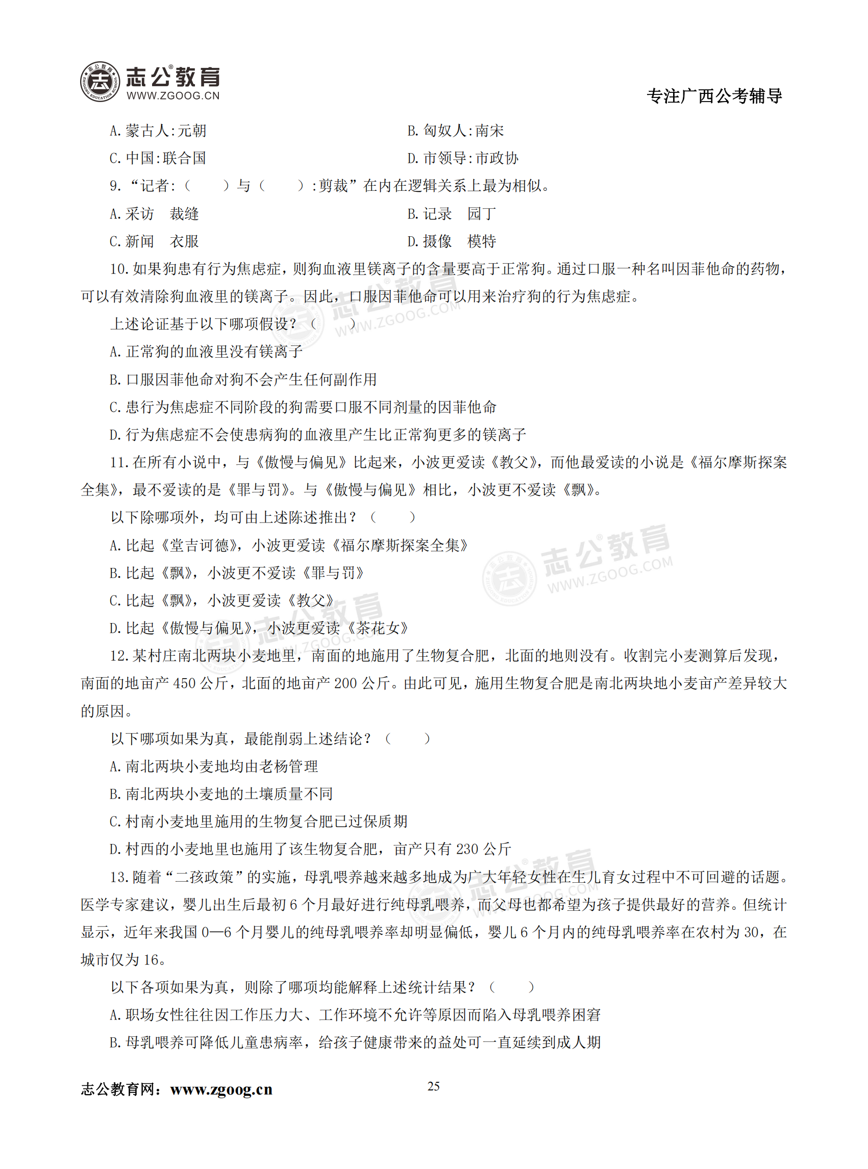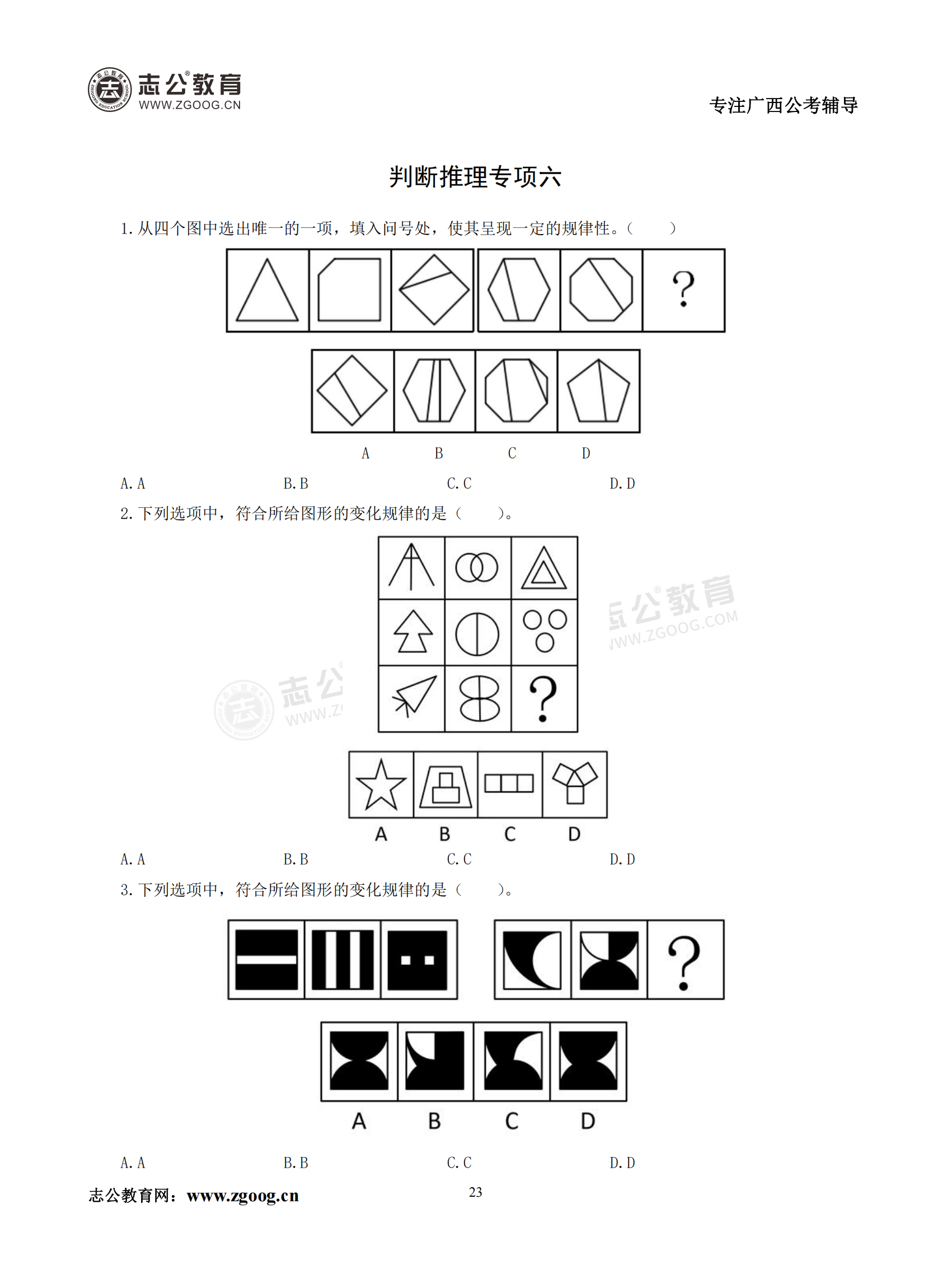 【公考模塊練習】判斷推理題六(試題)