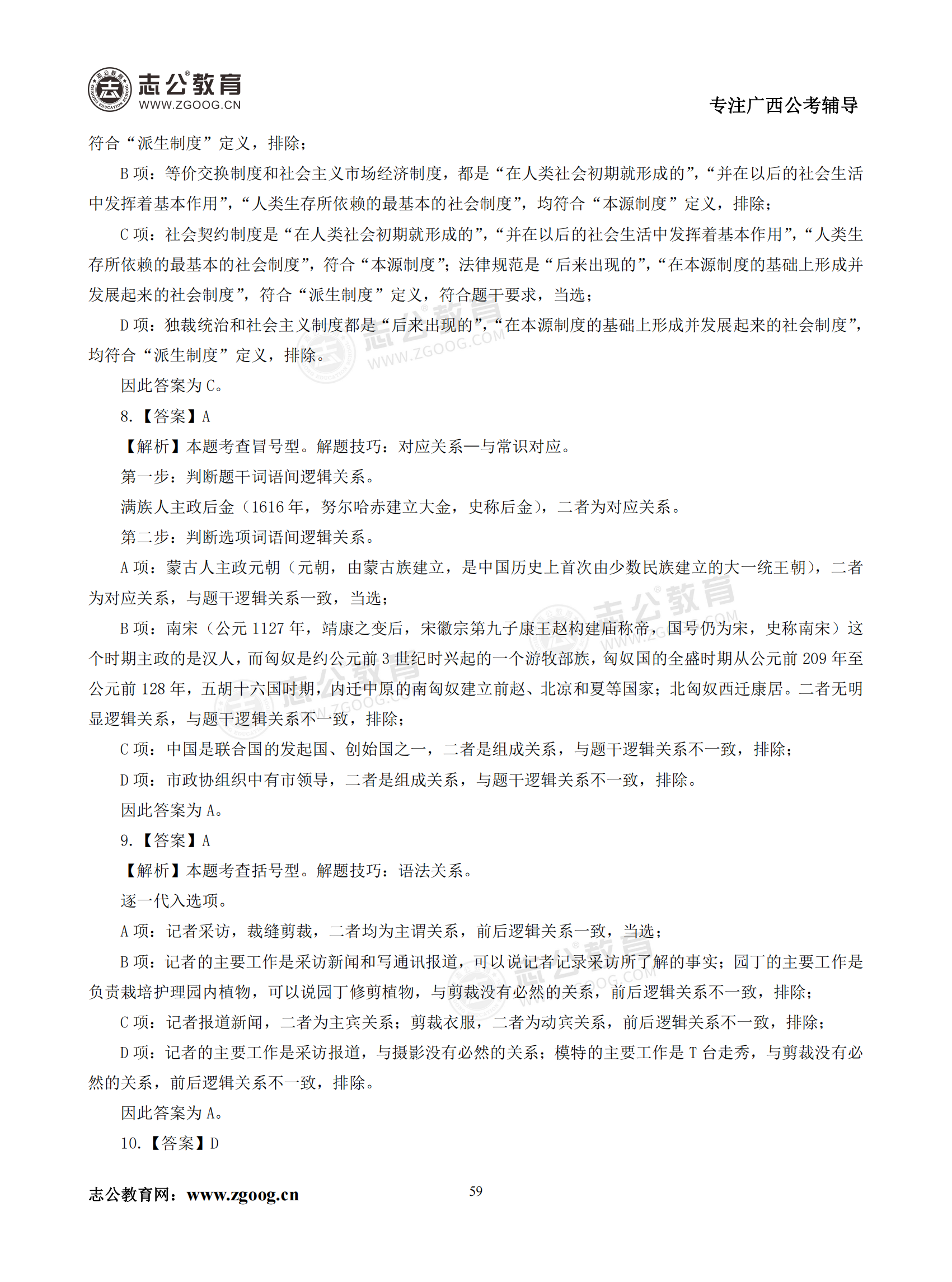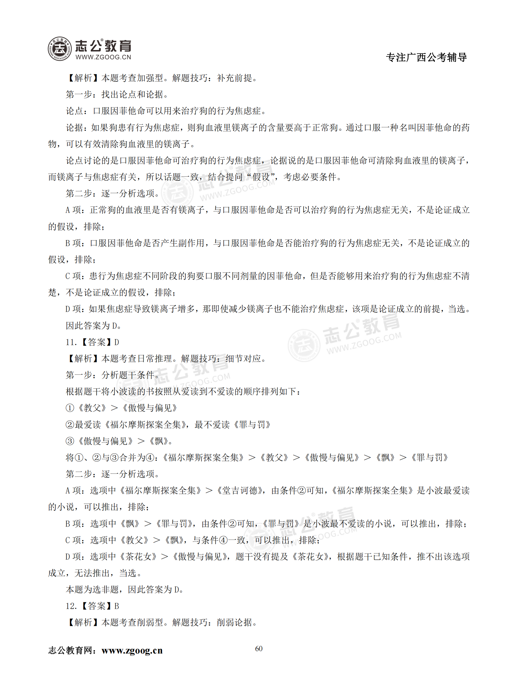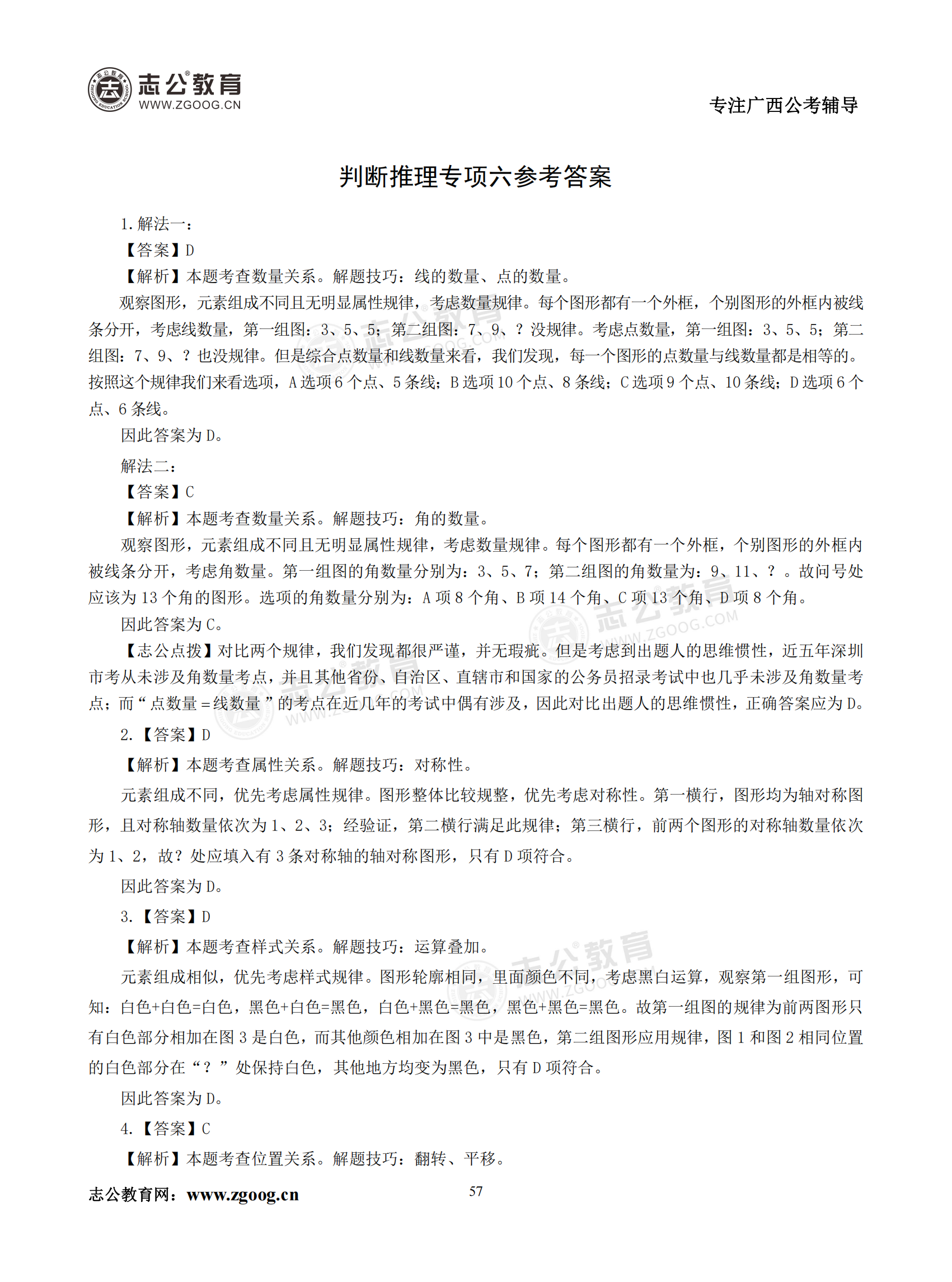 【公考模塊練習】判斷推理題六(答案)