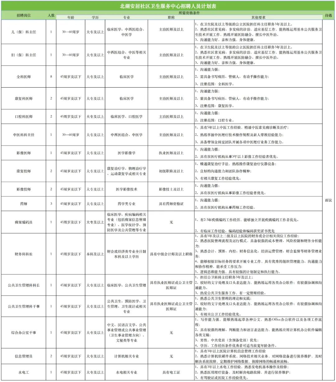 2025年北湖安居社區醫院招聘31人