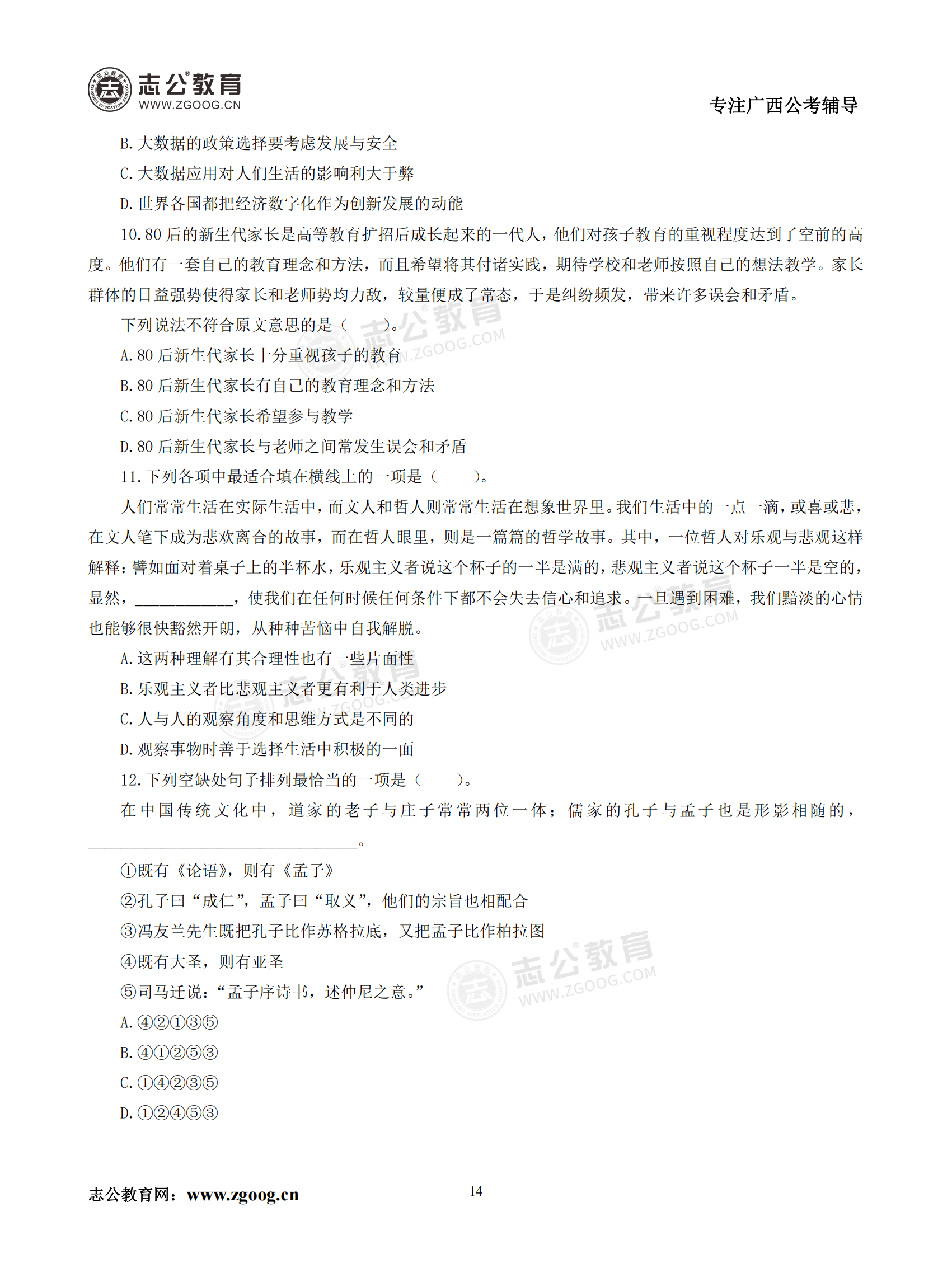 【公考模塊練習】言語理解題四(試題)