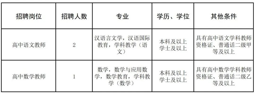 根據發展需要,學校擬招聘高中語文、高中數學頂崗教師共3人,具體招聘信息如下: