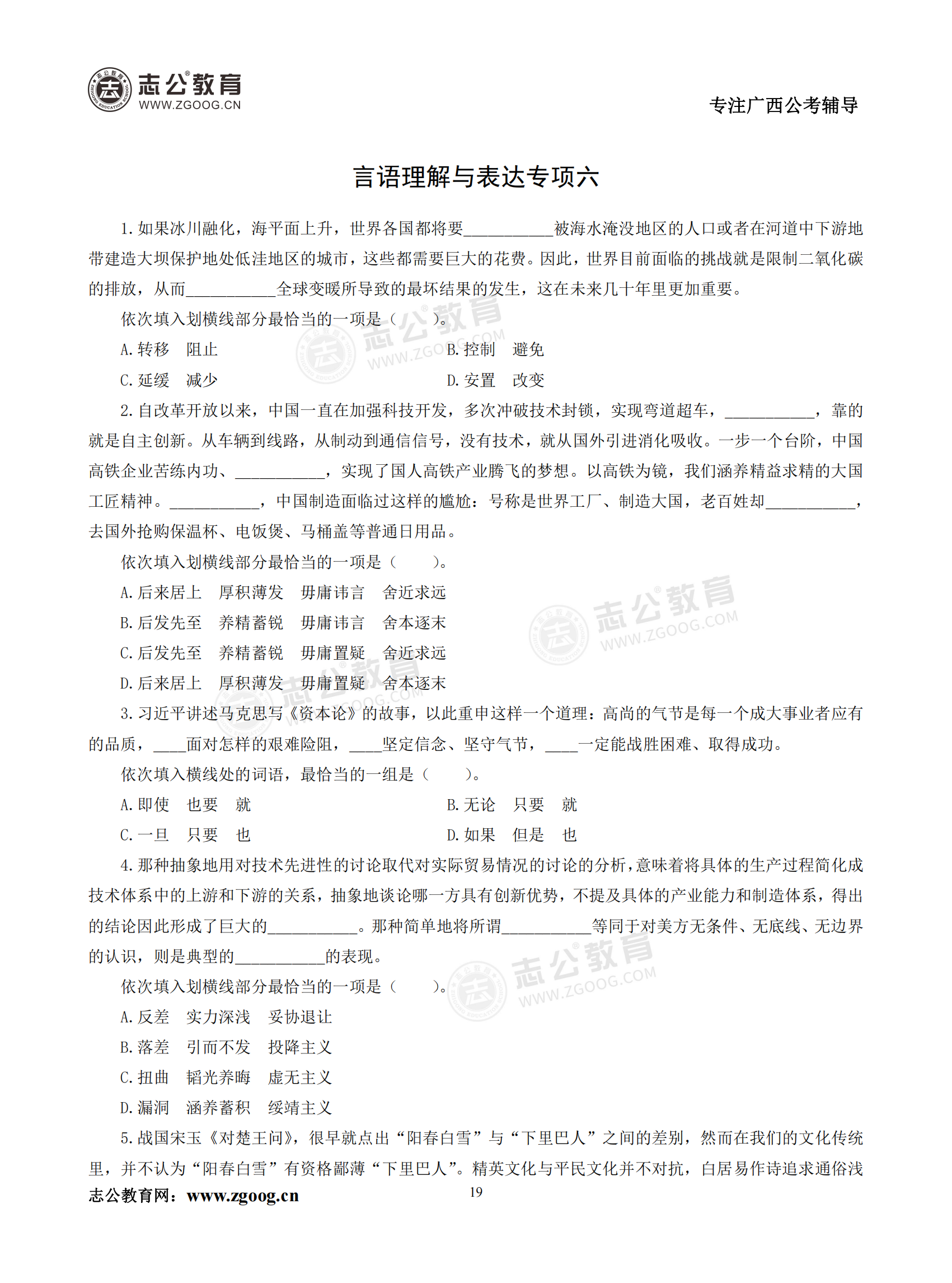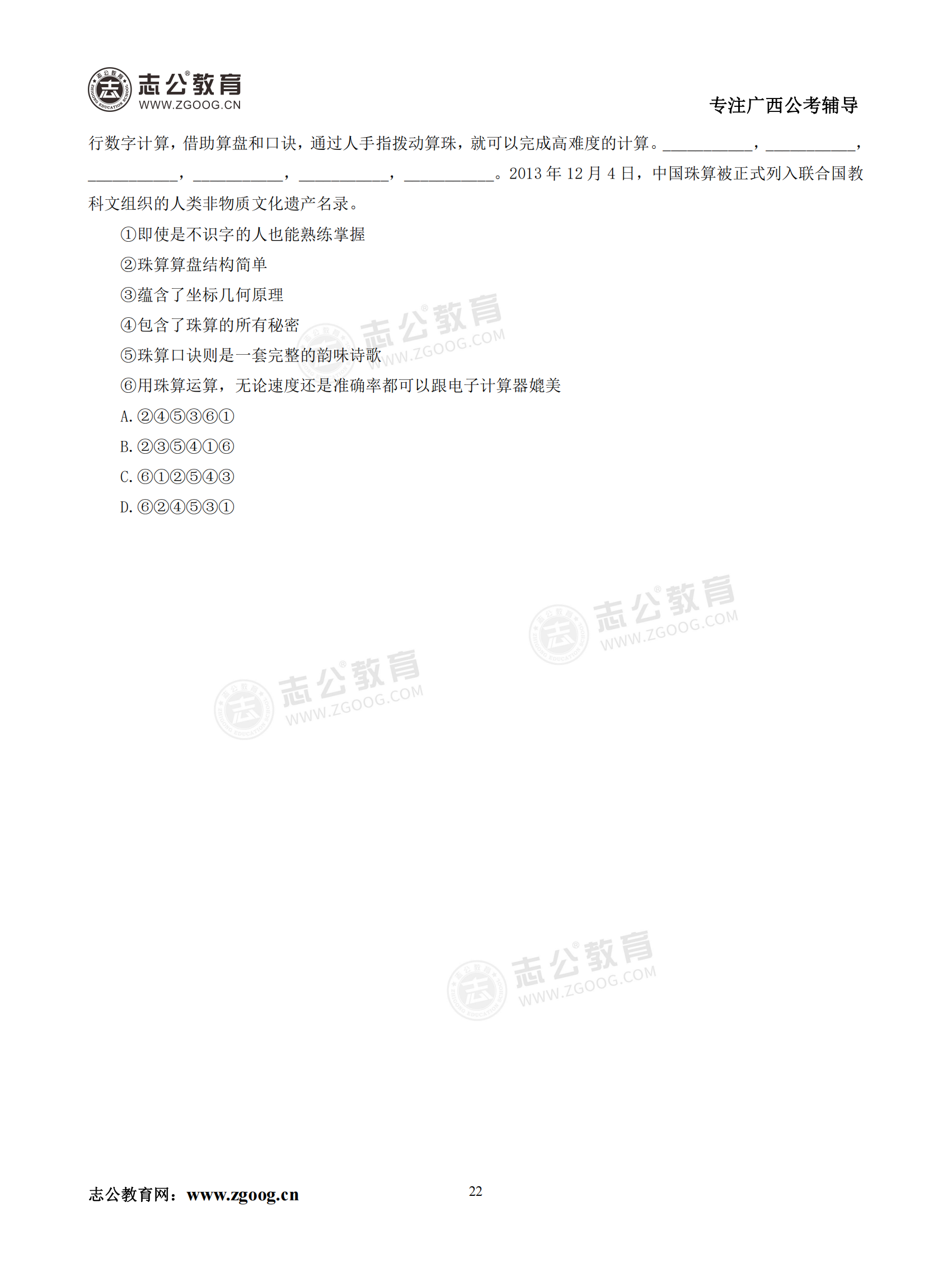 【公考模塊練習】言語理解題六(試題)