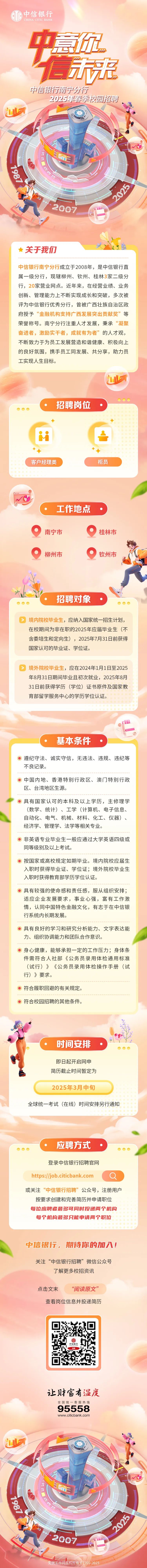 原文標題:2025年中信銀行南寧分行春季校園招聘