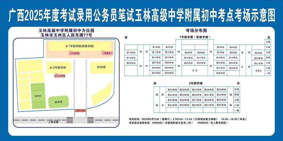 除考試當(dāng)天考生可以進(jìn)入考點(diǎn)外,考生不得提前進(jìn)入考點(diǎn)查看考場(chǎng)(學(xué)校將在大門處擺放考場(chǎng)分布示意圖),玉林考區(qū)11個(gè)考點(diǎn)的考場(chǎng)布置情況如下: