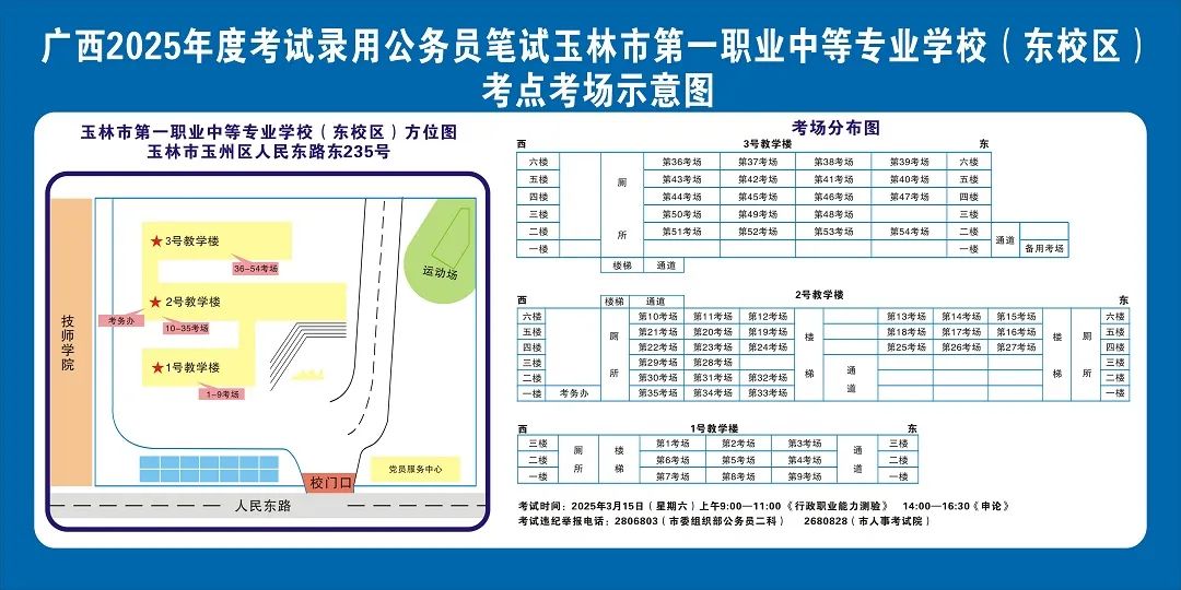 請(qǐng)及時(shí)登錄“廣西人事考試網(wǎng)”打印筆試準(zhǔn)考證并妥善保管,仔細(xì)查看準(zhǔn)考證上的考點(diǎn)信息。本次考試玉林市考區(qū)共設(shè)11個(gè)考點(diǎn),各考點(diǎn)名稱及地址如下: