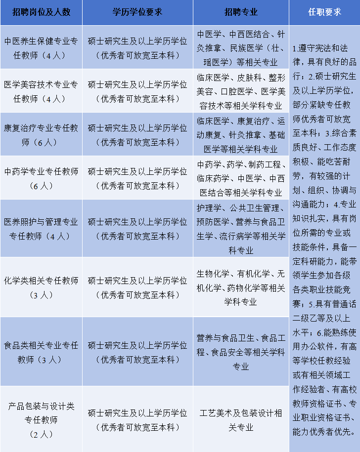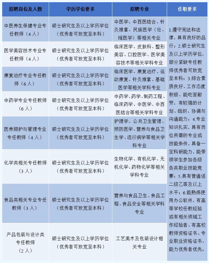 有意應聘者,請將以下材料電子版發送至健康學院郵箱及人事專員郵箱:gxcszydx_jkxy@163.com/395421923@qq.com/ 1823916709@qq.com請在主題寫明“應聘崗位+姓名+最高學歷+畢業院校+專業”,以便查收。報名需提供以下材料: