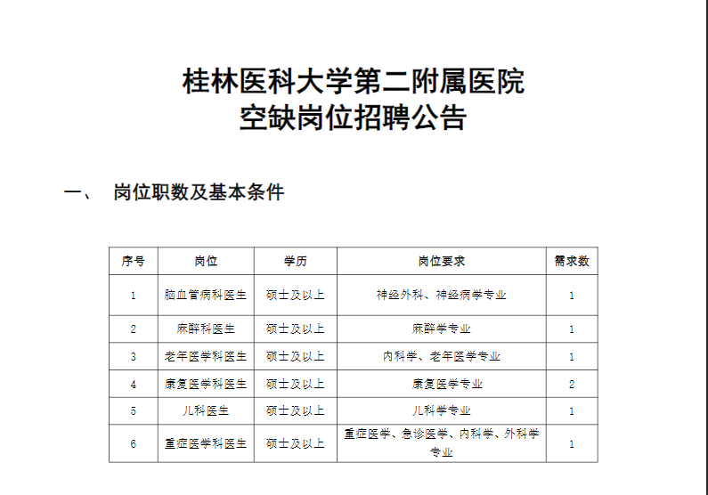 原文標題:桂林醫科大學第二附屬醫院空缺崗位招聘公告2025年5月12日