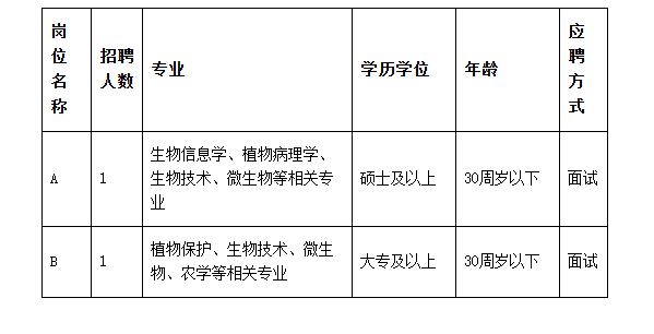 (二)植物保護、生物信息學、生物技術、微生物、農學等相關專業;