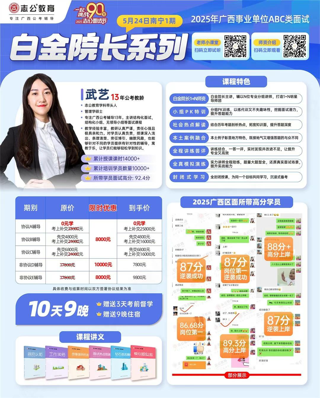 2025年廣西事業單位ABC類面試白金院長系列課程,匯聚頂尖師資,打造科學體系,為每一位考生提供高效、精準、貼心的備考支持。