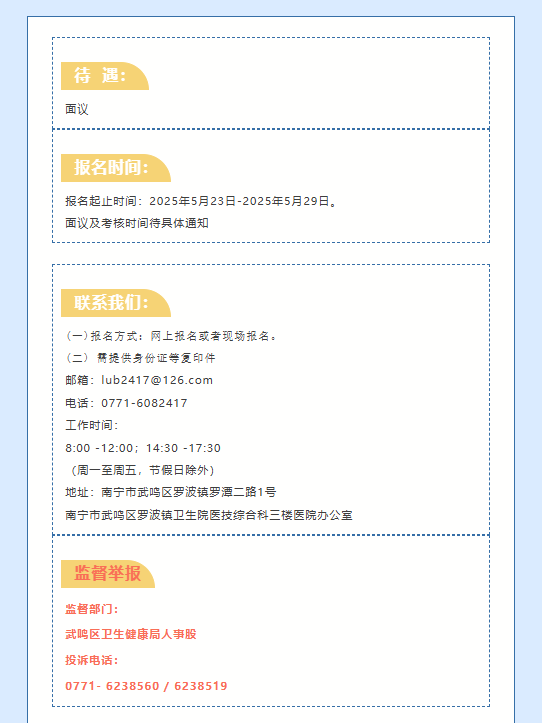 原文標題:南寧市武鳴區羅波鎮衛生院公開招聘工作人員公告