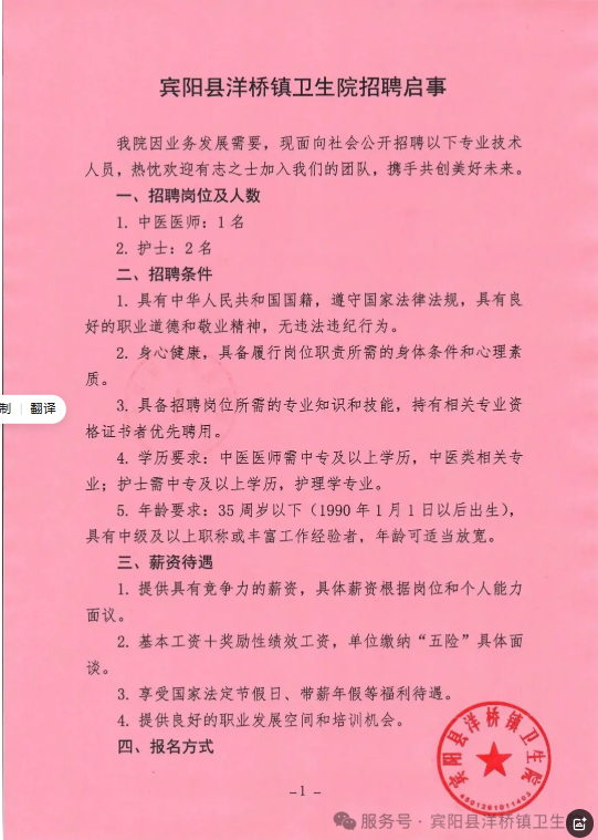 原文標題:賓陽縣洋橋鎮衛生院招聘啟事