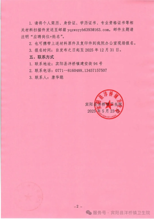 2025年廣西賓陽縣洋橋鎮衛生院招聘3人
