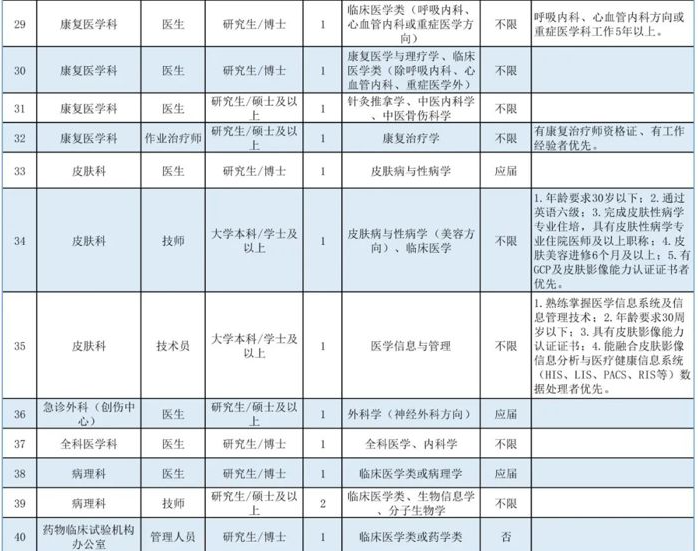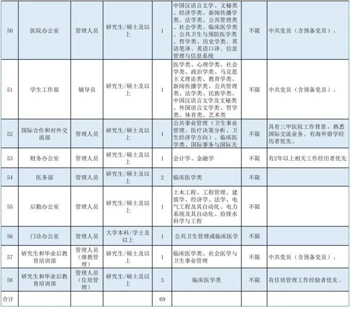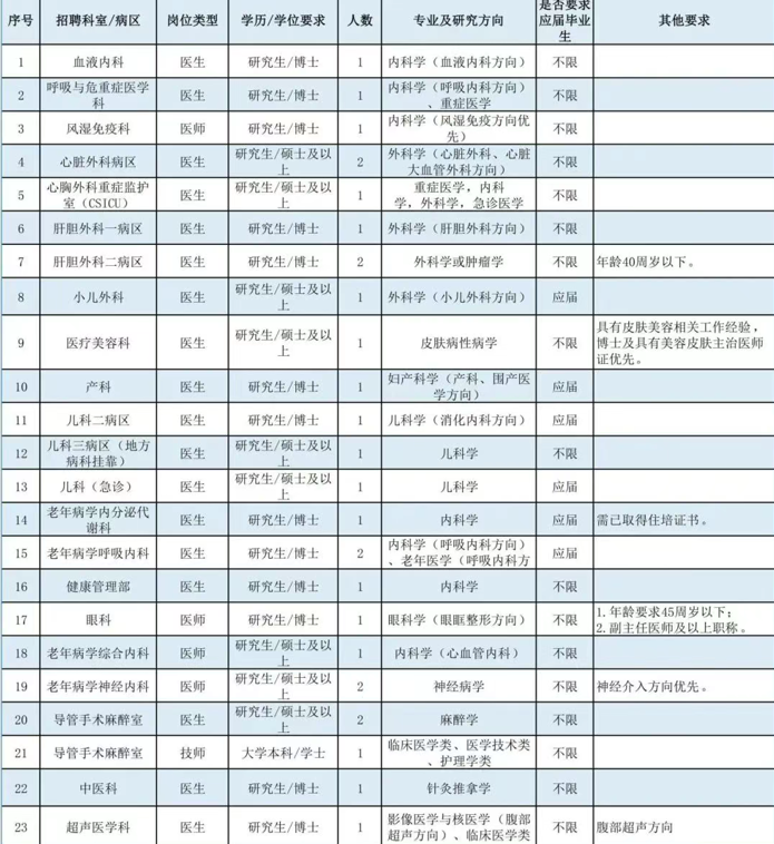 根據(jù)我院人才及學(xué)科發(fā)展需要,現(xiàn)面向社會(huì)招聘醫(yī)生、技師、護(hù)理、行政管理及科研等崗位人才69名,具體如下: