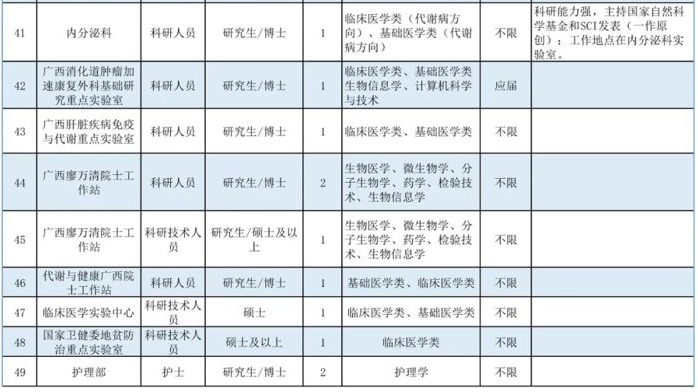 2.符合《廣西醫(yī)科大學(xué)第一附屬醫(yī)院高層次人才引進(jìn)管理實(shí)施辦法》條件者,可按相關(guān)程序認(rèn)定,并享受安家費(fèi)、科研啟動(dòng)基金等優(yōu)厚待遇(詳見(jiàn)附件1)。