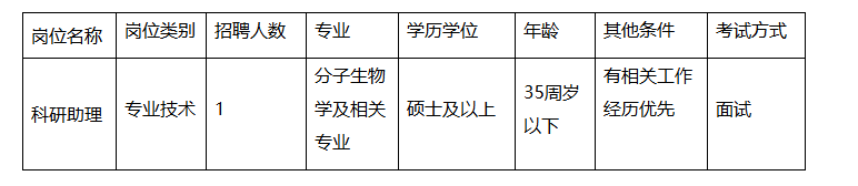 7.具備獨立開展科研工作的能力,愿意聽從課題組長工作安排,職業目標明確,有決心和毅力進行長期艱苦的工作。
