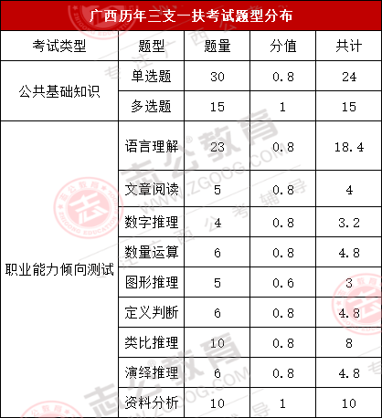 2025年廣西三支一扶歷年筆試考情