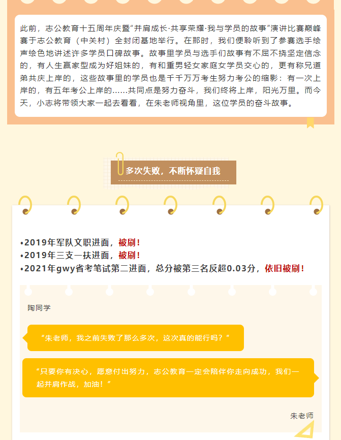 這個學(xué)員從大學(xué)本科畢業(yè)開始,就踏上了一條充滿挑戰(zhàn)的道路。他一心想要考上選調(diào)生,這一路走來,竟也花了整整五年時間。在這五年里,他始終堅定執(zhí)著,從未放棄過自己的夢想。
