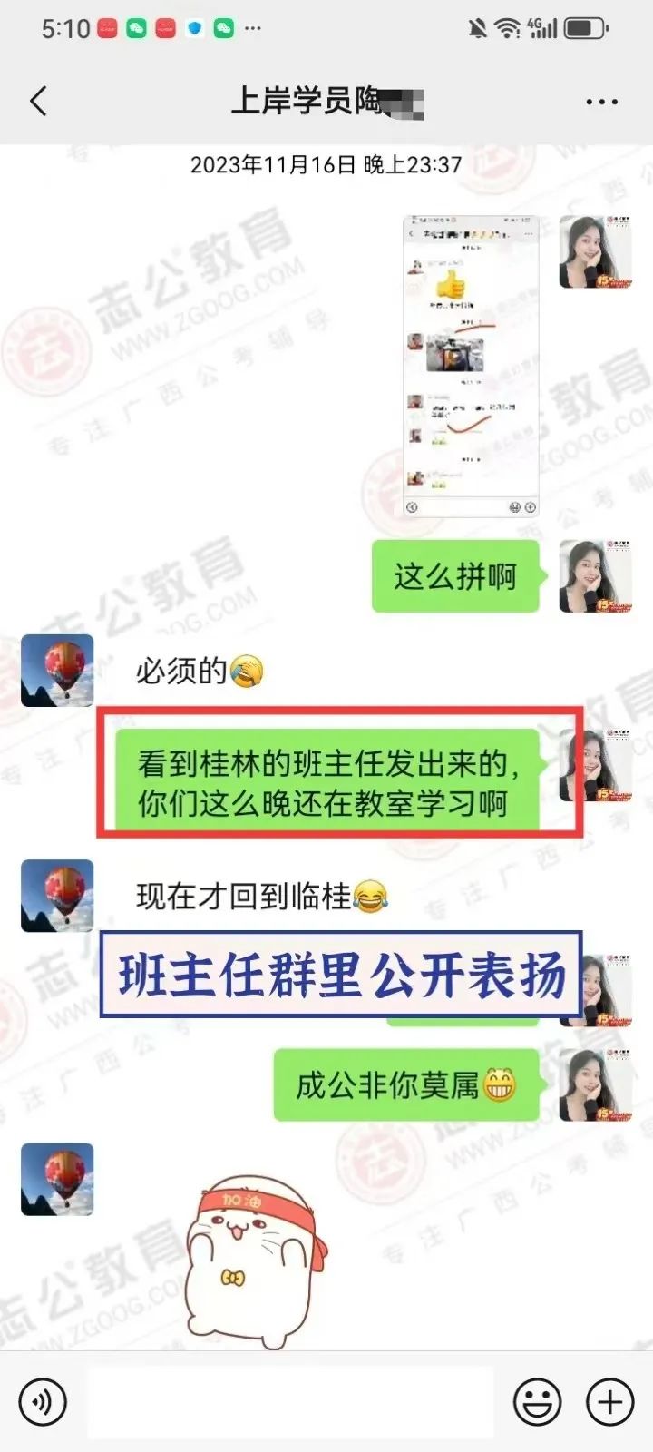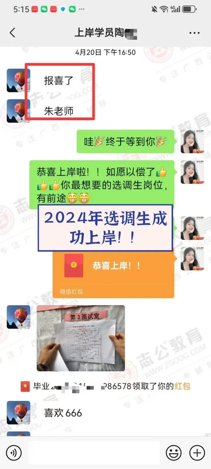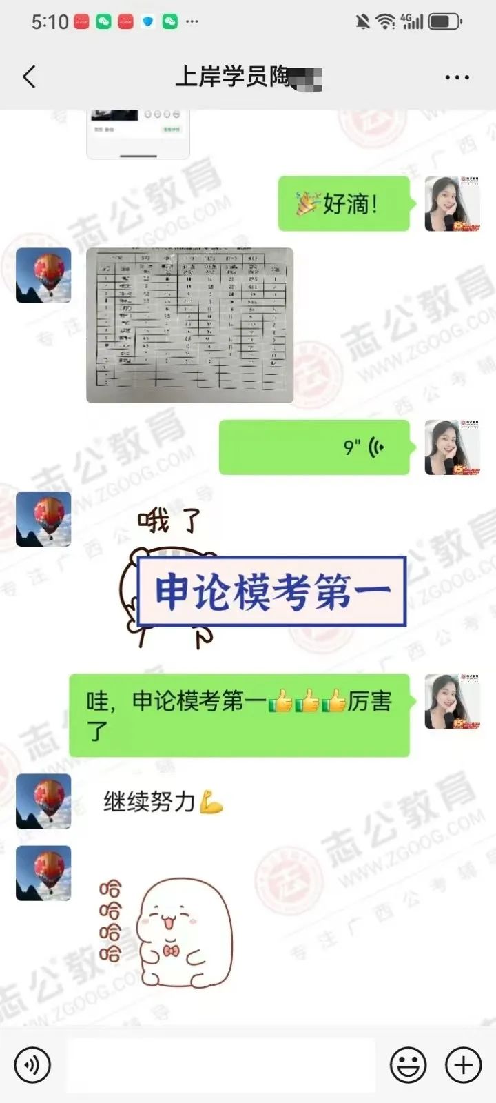 2023年,臨近研究生畢業(yè)時,一次偶然的機會,他得知同學(xué)的愛人也就是我,在我們志公教育任教。加我微信后跟我了解到我們志公有一個非常適合他的畢業(yè)成公課程,也了解到我們是一家優(yōu)秀的公考培訓(xùn)機構(gòu)后,8月他毫不猶豫地報了我們的畢業(yè)成功班。從那以后,他一邊上學(xué)一邊培訓(xùn),常常學(xué)習(xí)到深夜。2024年國考,他進面了,聯(lián)系了我升級面試班,但未能成功上岸。不過他沒有絲毫氣餒,迅速調(diào)整心態(tài),繼續(xù)征戰(zhàn)農(nóng)信社和選調(diào)生。