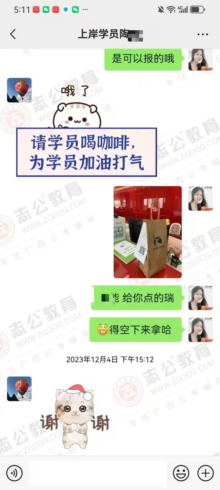 為他安排一杯暖心的咖啡,他在第二天也回請了我“帶有西大文化底蘊的瑞幸”。期間,還主動給我轉(zhuǎn)介紹了 3 個同學(xué)來報班!在這條逐夢的道路上,我們不僅僅是師生,更是相互信任、相互支持的知心朋友。
