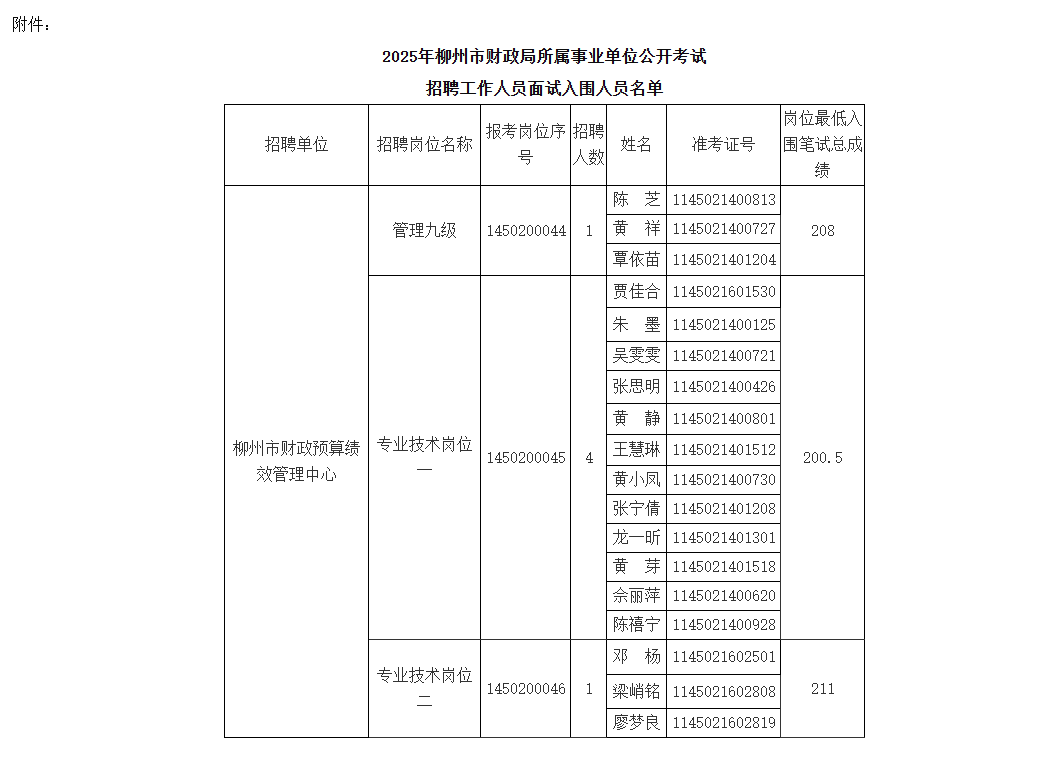 附件:《2025年柳州市財政局下屬事業單位公開考試招聘工作人員面試入圍人員名單》