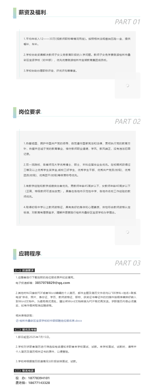 桂林市疊彩區寶賢學校招聘教師若干人
