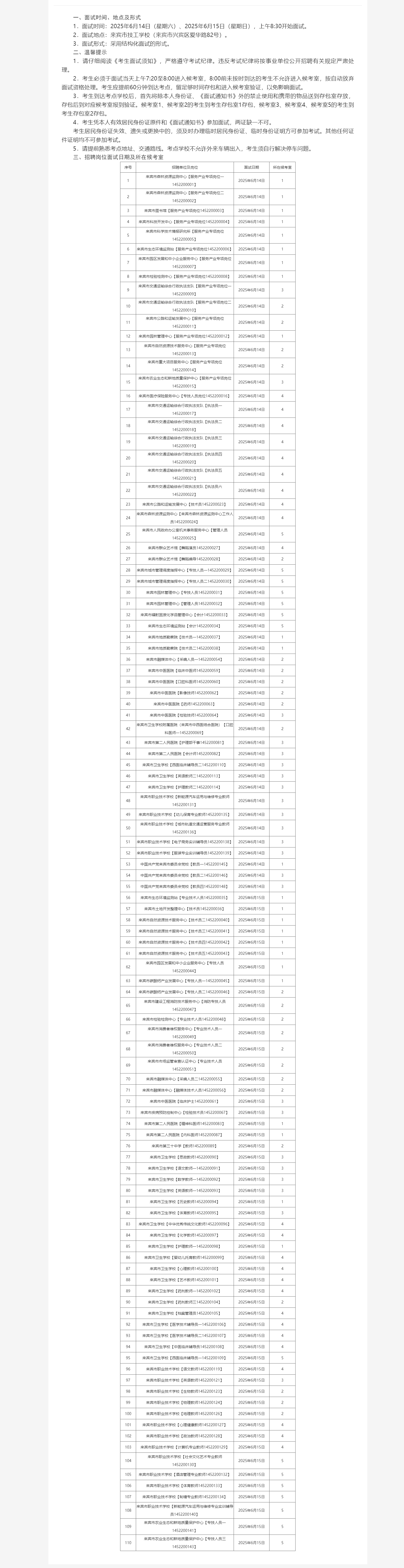 原文標題:來賓市2025年市直事業單位公開招聘人員面試招聘崗位所在候考室和溫馨提示