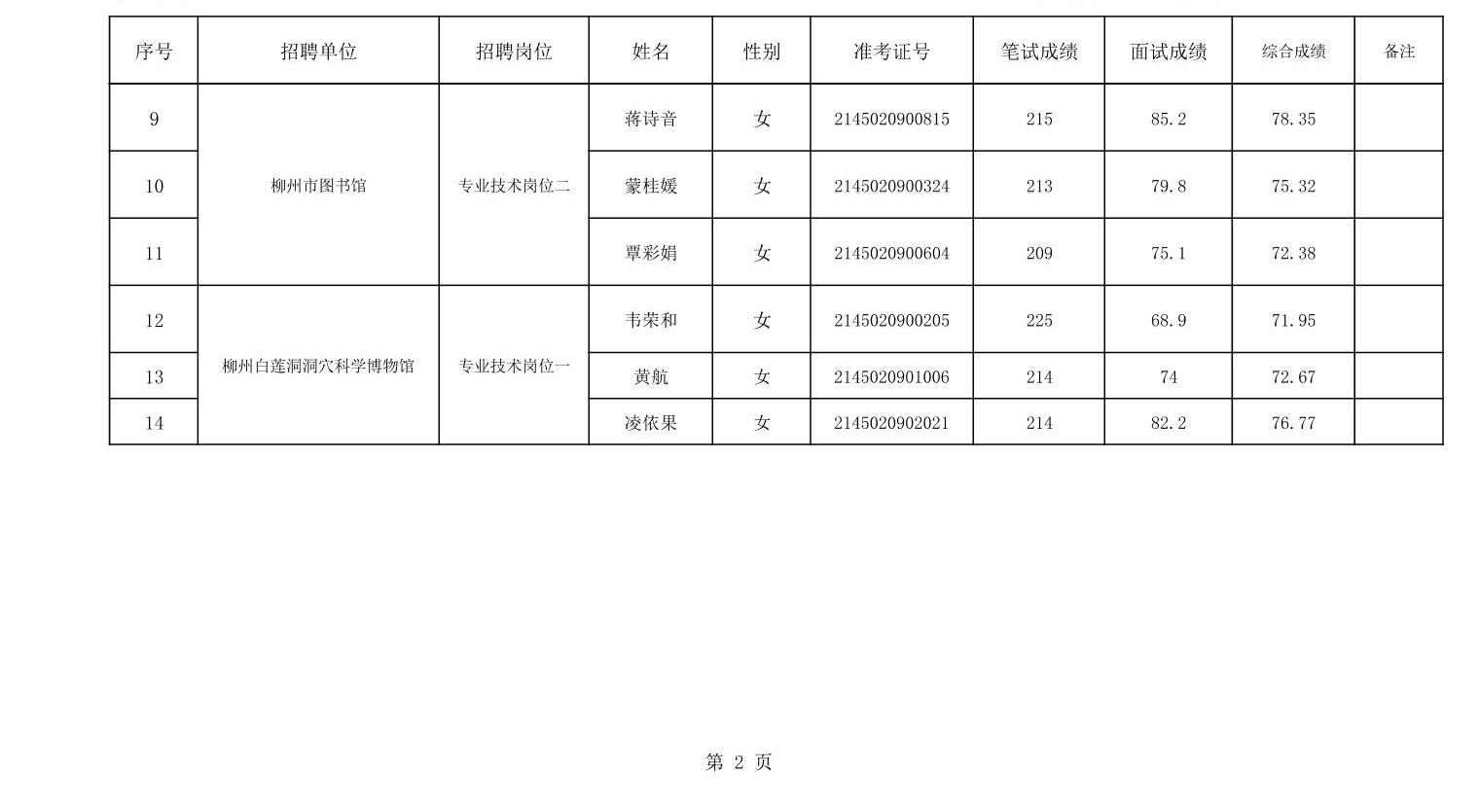 2025年柳州市文化廣電和旅游局所屬事業單位公開招聘成績公布表