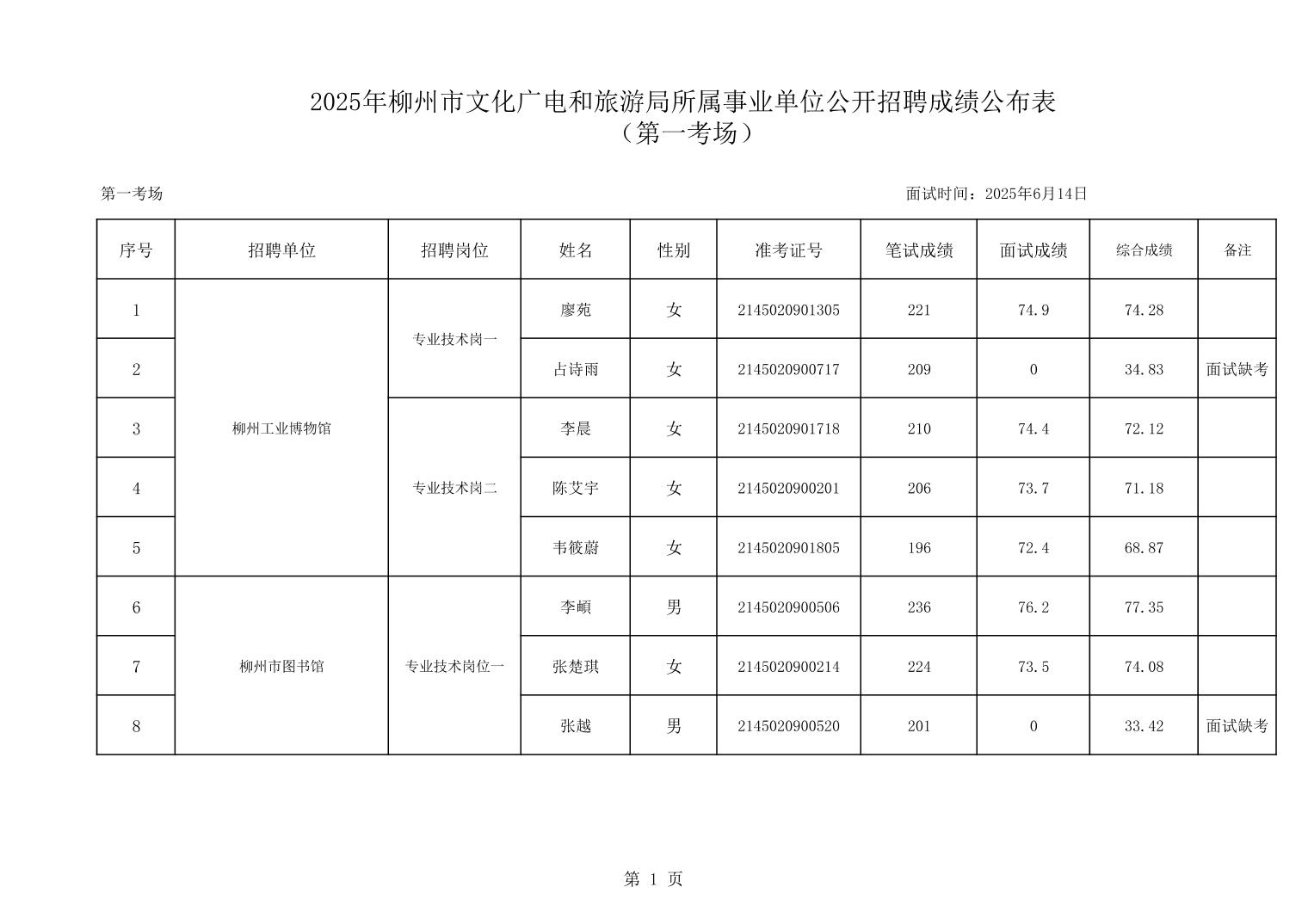 原文標題:2025年柳州市文化廣電和旅游局所屬事業單位公開招聘成績公布表