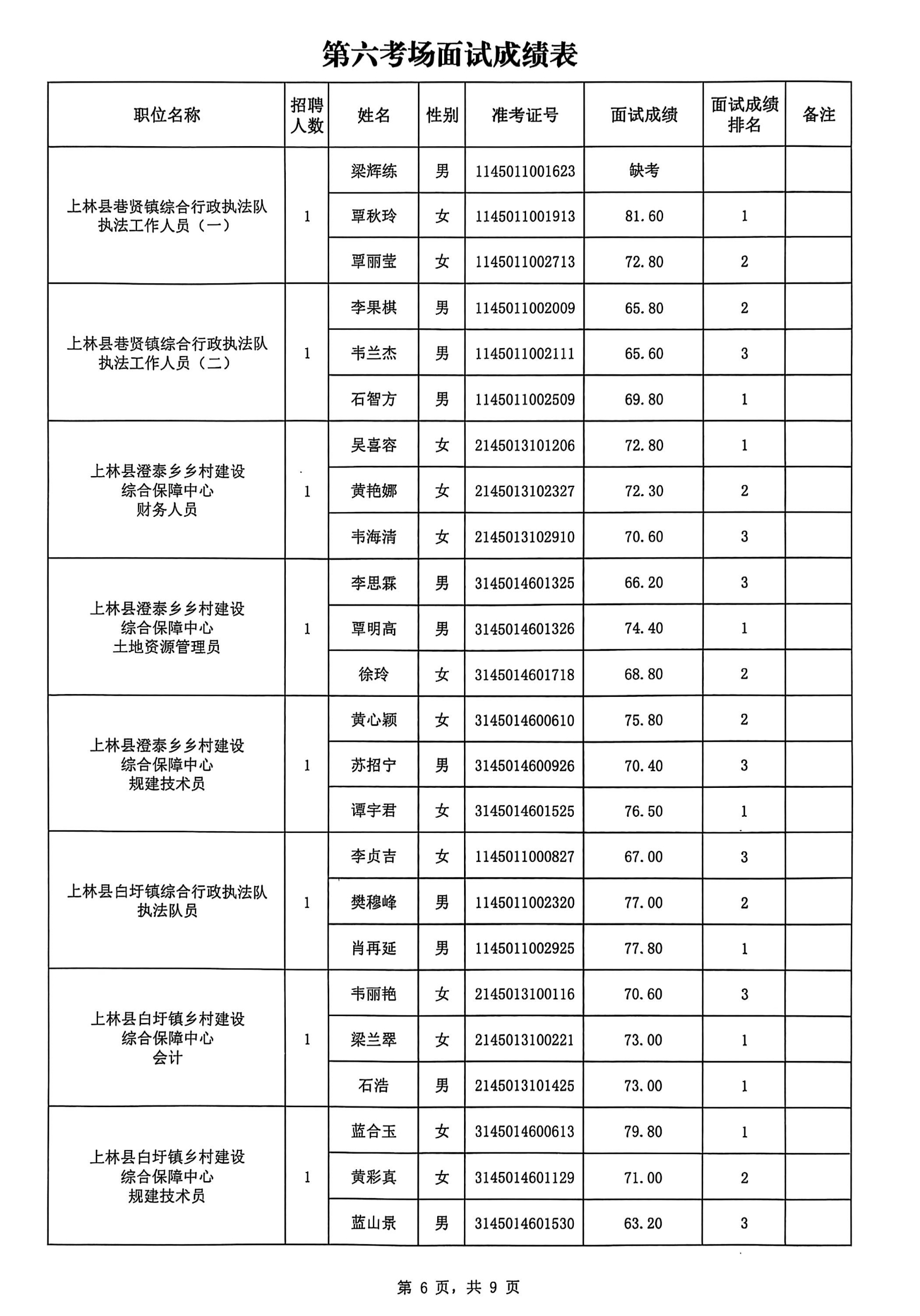 上林縣2025年公開考試招聘事業單位工作人員面試成績公布如下:
