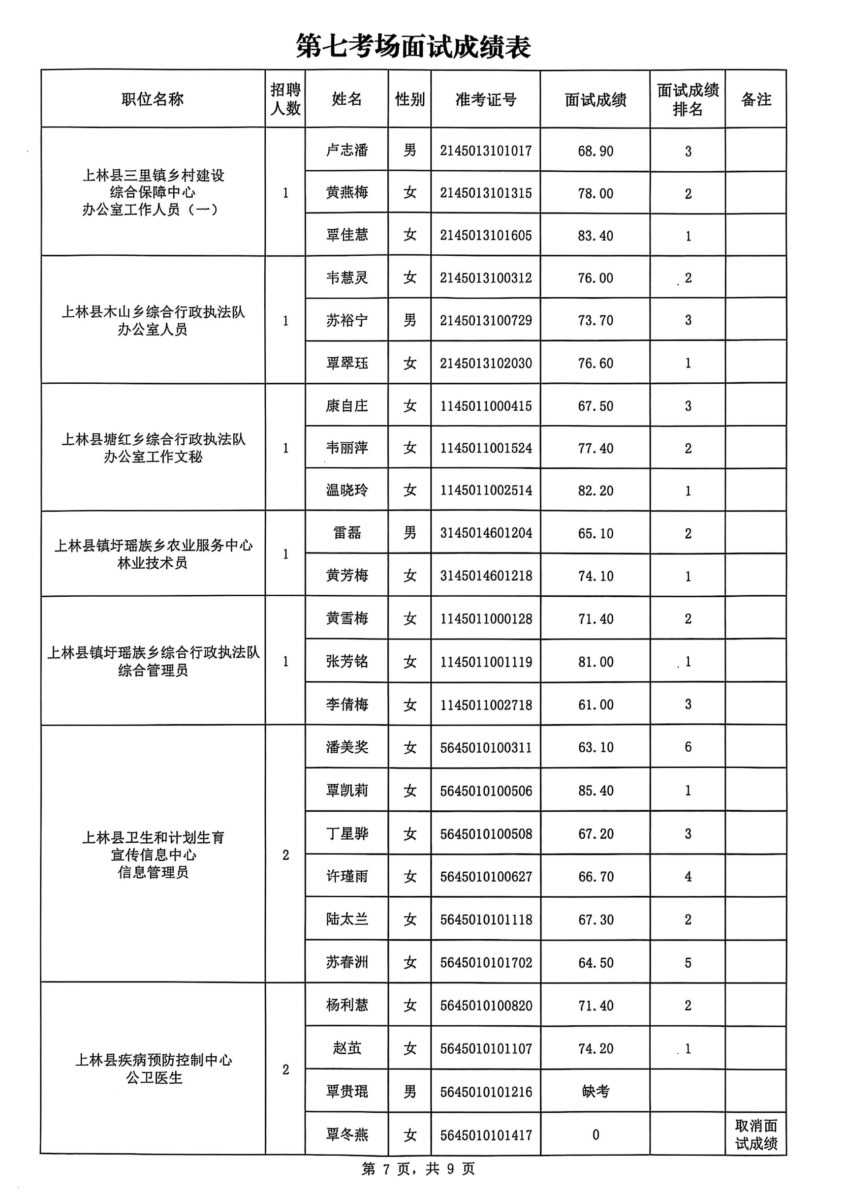 上林縣2025年公開考試招聘事業單位工作人員面試成績