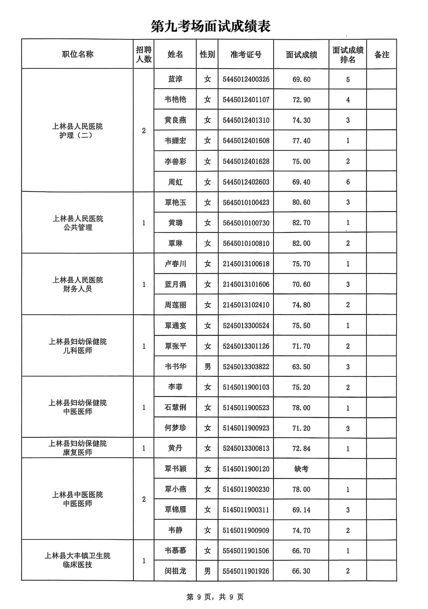 原文標題:上林縣2025年公開考試招聘事業單位工作人員面試成績