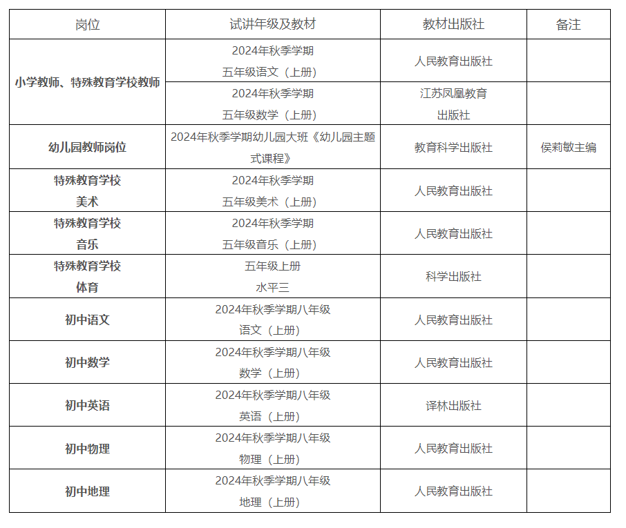 中小學教師崗位、特殊教育學校教師崗位、幼兒園教師崗位