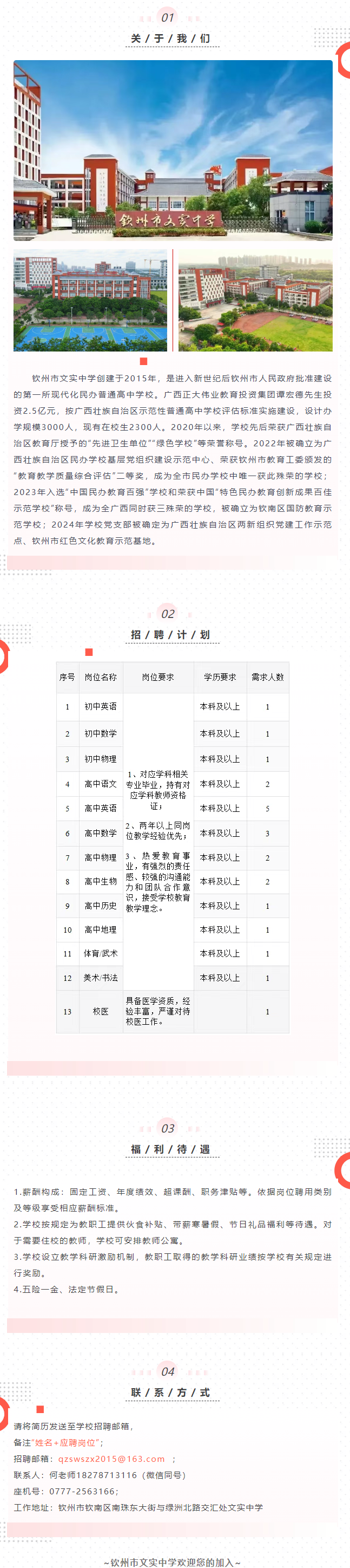 2025年欽州市文實(shí)中學(xué)秋招聘若干人