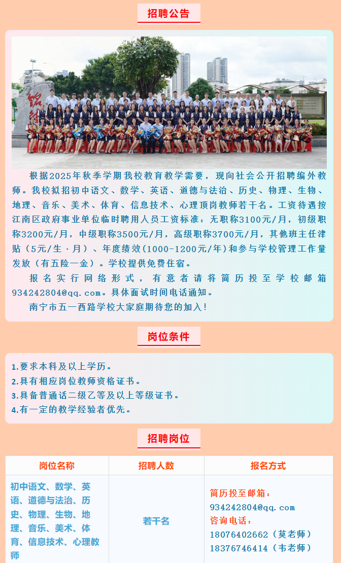 原文標題:快報名!南寧市五一西路學校招聘老師啦!