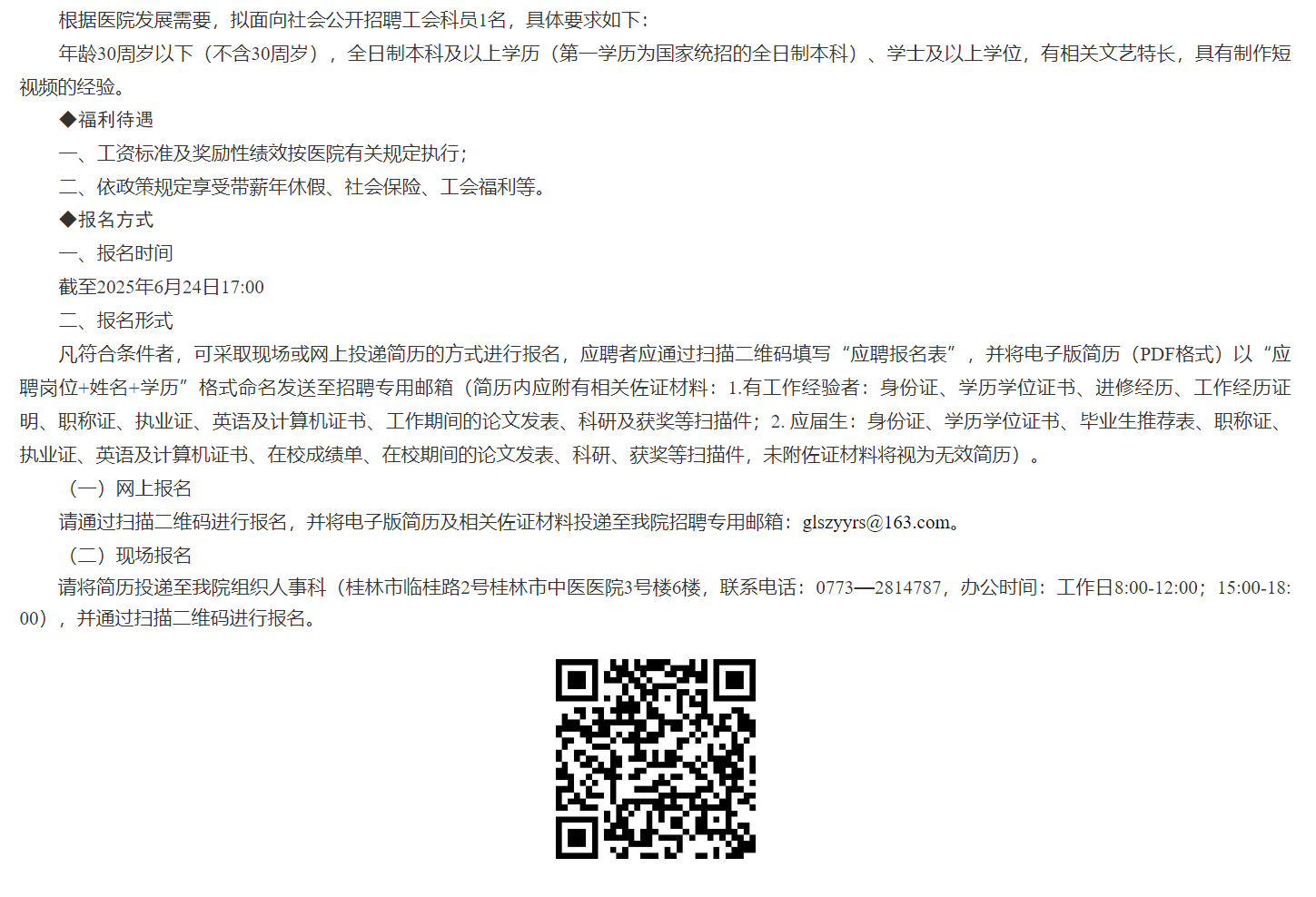 原文標題:桂林市中醫醫院工會科員招聘啟事