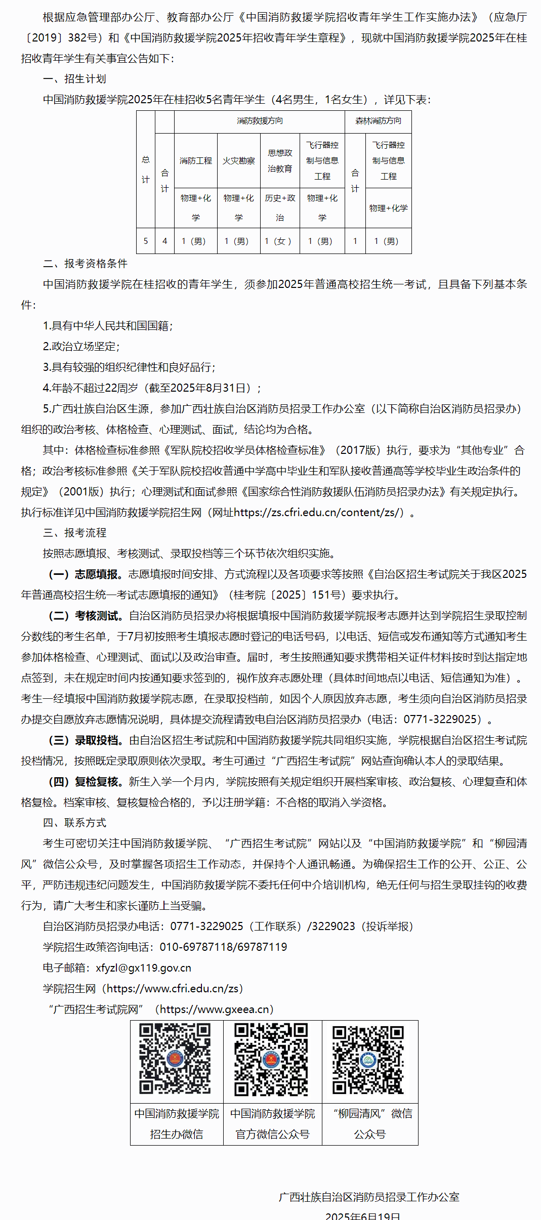 2025年中國消防救援學院面向廣西壯族自治區招收青年學生公告